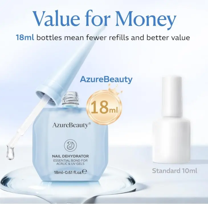 ·Bigger 18ml Bottles & Strong Adhesion: Unlike standard 15ml nail dehydrator and primer sets, AzureBeauty gives you larger 18ml bottles for extended use. Ideal for DIY nail lovers and professional nail techs who need a reliable nail prep system without constant repurchasing. A must-have nail dehydrator and acid-free primer kit for flawless application