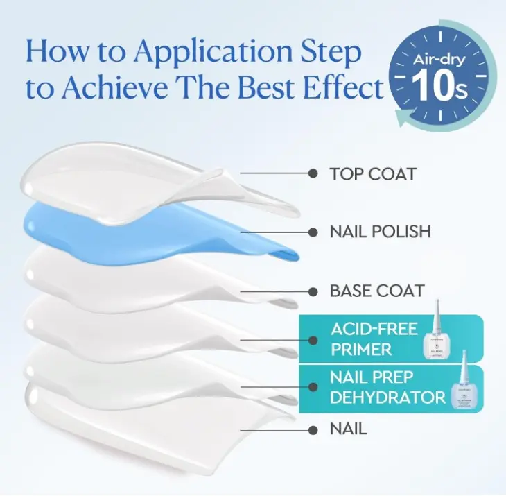 ·Double Prep System for Maximum Bonding: The dehydrator removes moisture and oil, and the nail primer creates superior bonding strength. Together they prevent peeling, yellowing, bubbling, and early lifting — ensuring salon-quality results at home