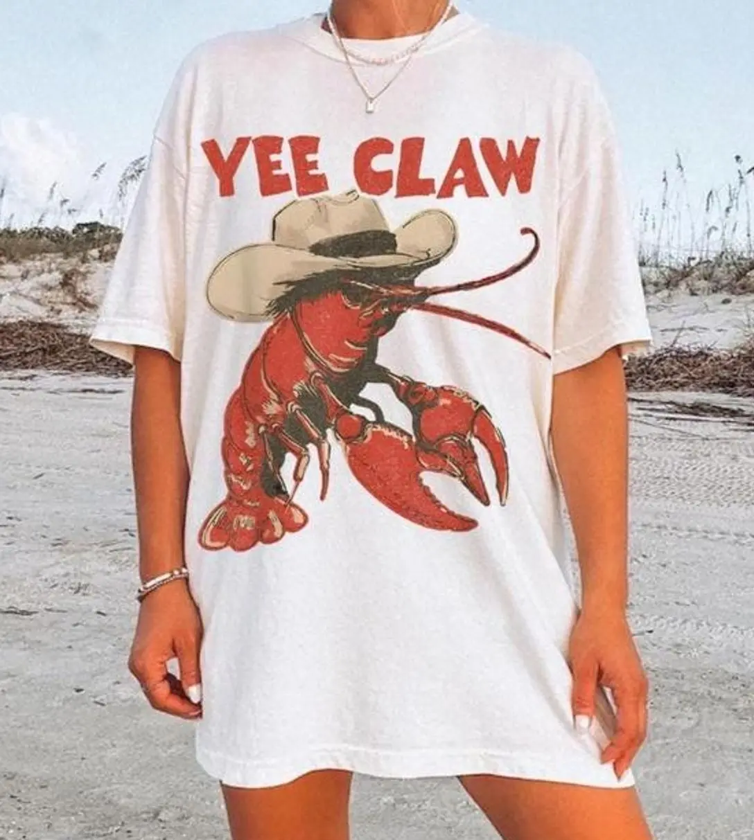 5. Vintage Yee Claw Shirt, Western Lobster Graphic Tee, Funny Coastal Cowgirl T-Shirt, Southern Beach Summer Shirt, Unisex Tee 6