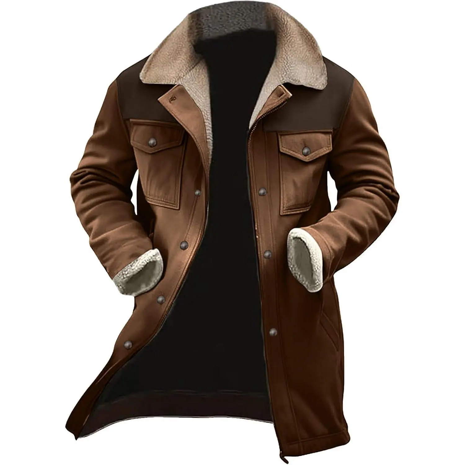 Mens Western Cowboy Jacket Vintage Suede Jacket Long Coats Zip Up Plush Collar Cowboy Peacoat Retro Tops Casual Menswear Fathersdaygift Soft Fleece Hoodie jacket western clothing jackets letterman ffa jacket western clothing windbreakers Leather