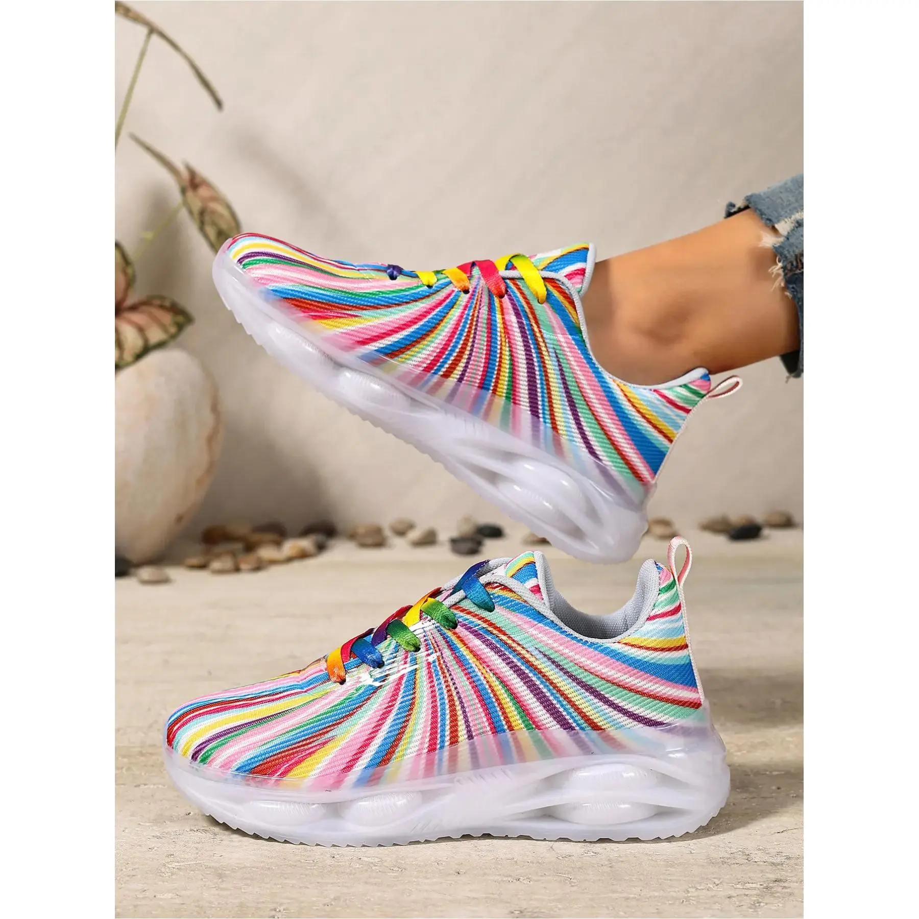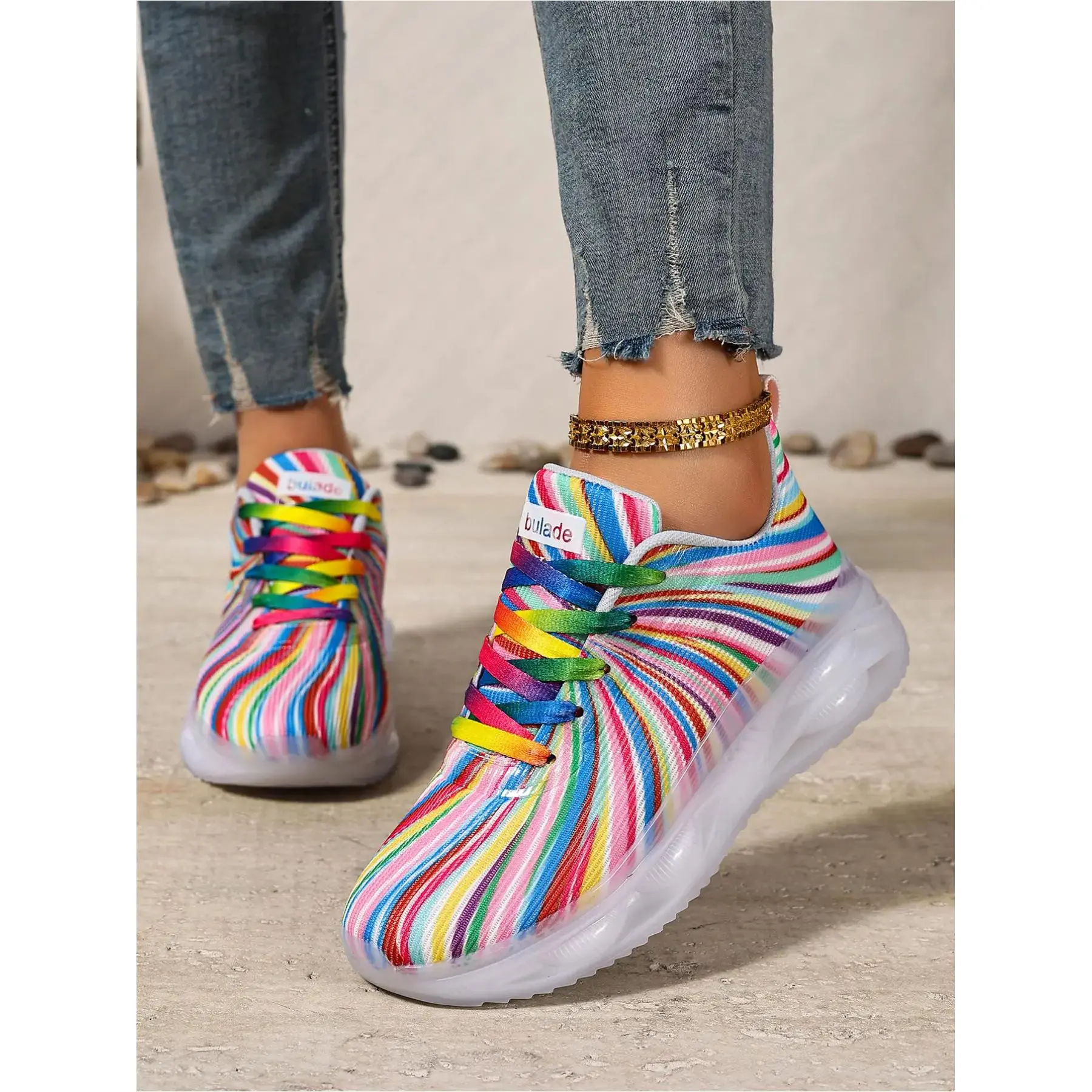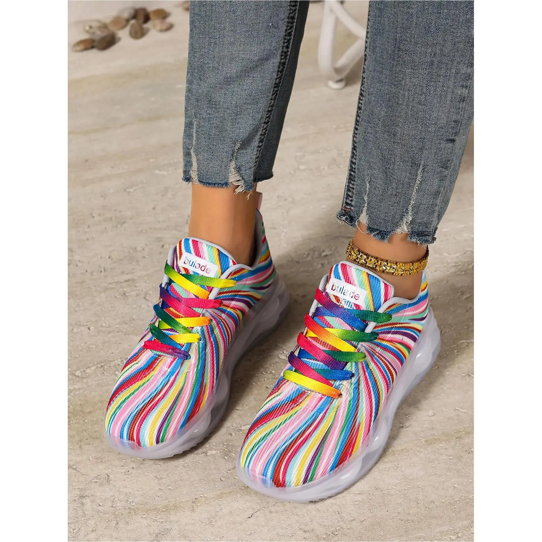 Women's Lace-Up Colorful Jelly Platform Sneakers - Lightweight Breathable Casual Shoes for Outdoor Sports & Daily Wear