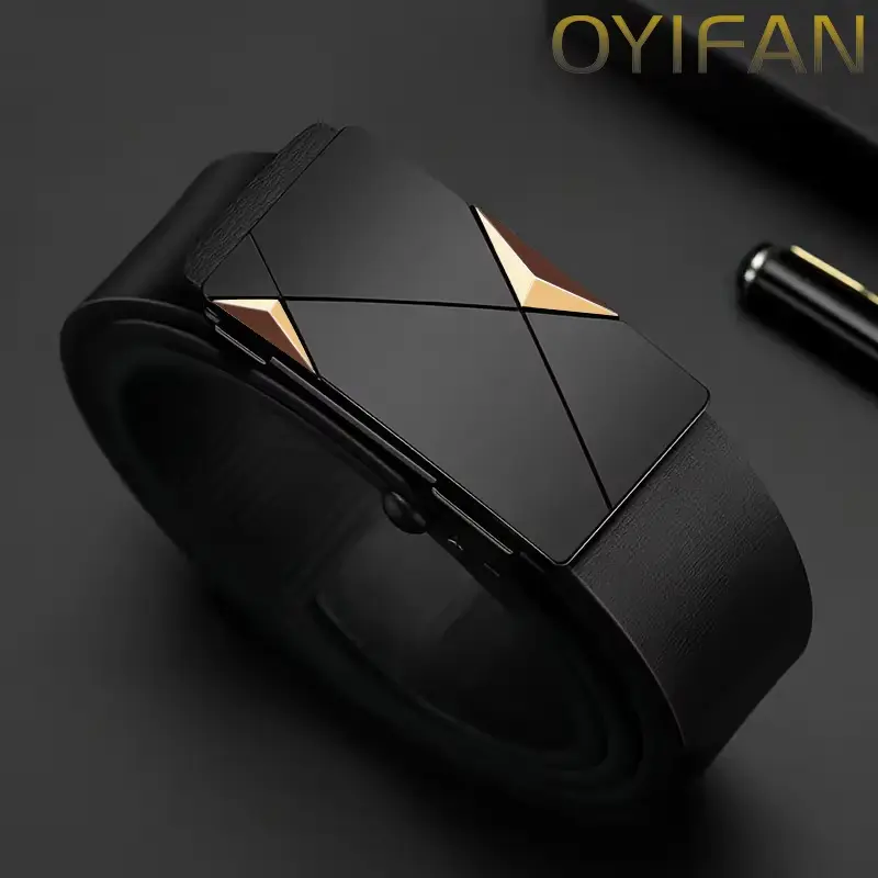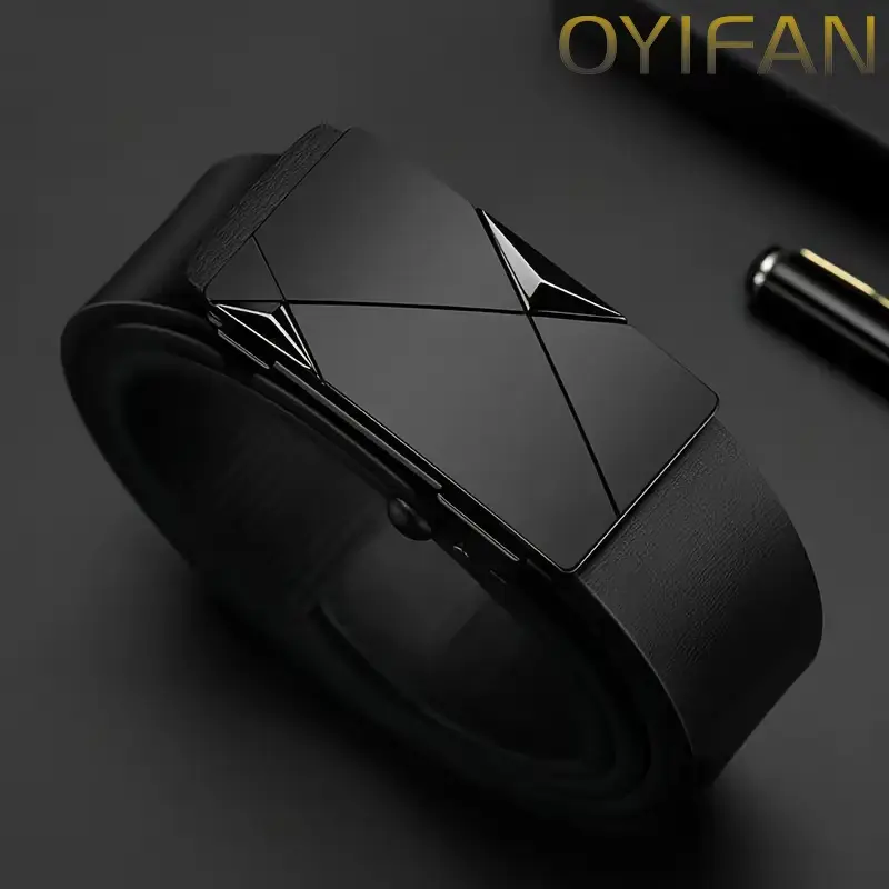 Fashion Men's Belt Men's Genuine Leather Belt Automatic Buckle Ratchet Belt Random Adjustment