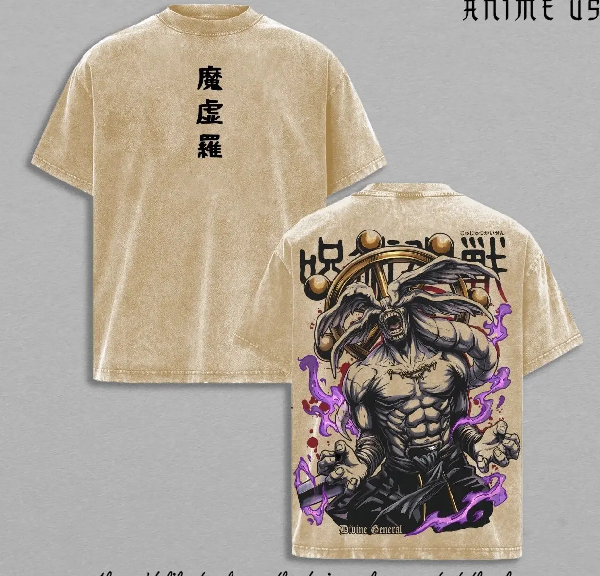 Jujutsu Kaisen Mahoraga Divine General Vintage Washed T-Shirt | Shikigami Power Anime Graphic Tee Dark Energy Spirit Warrior | Oversized Streetwear Heavy Cotton Shirt IR7