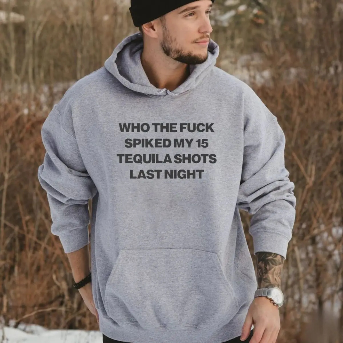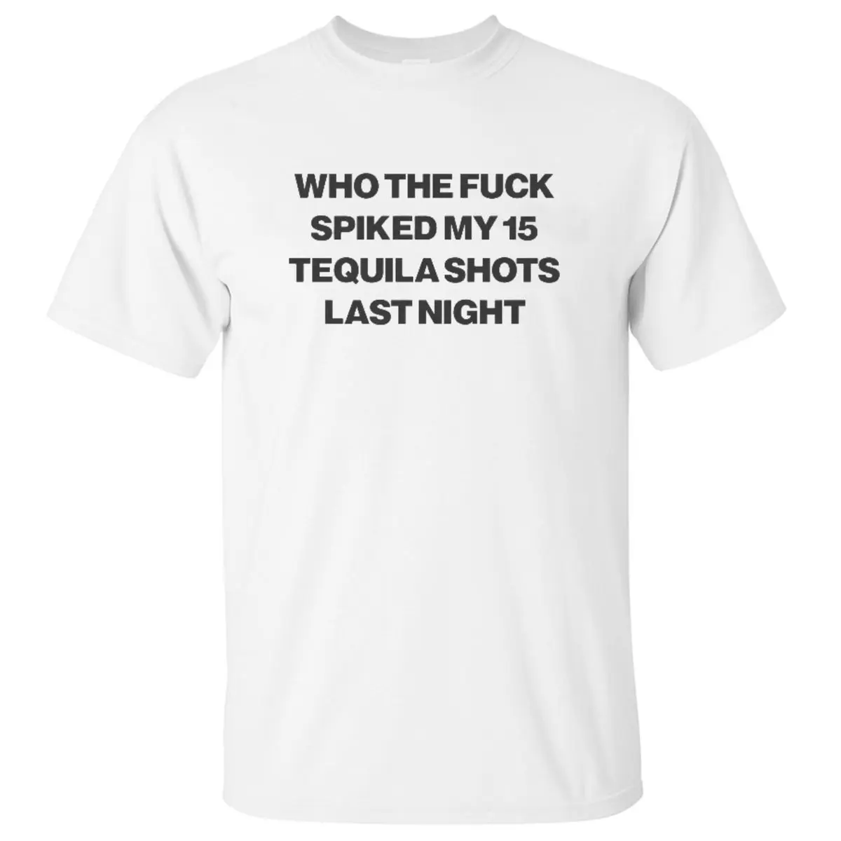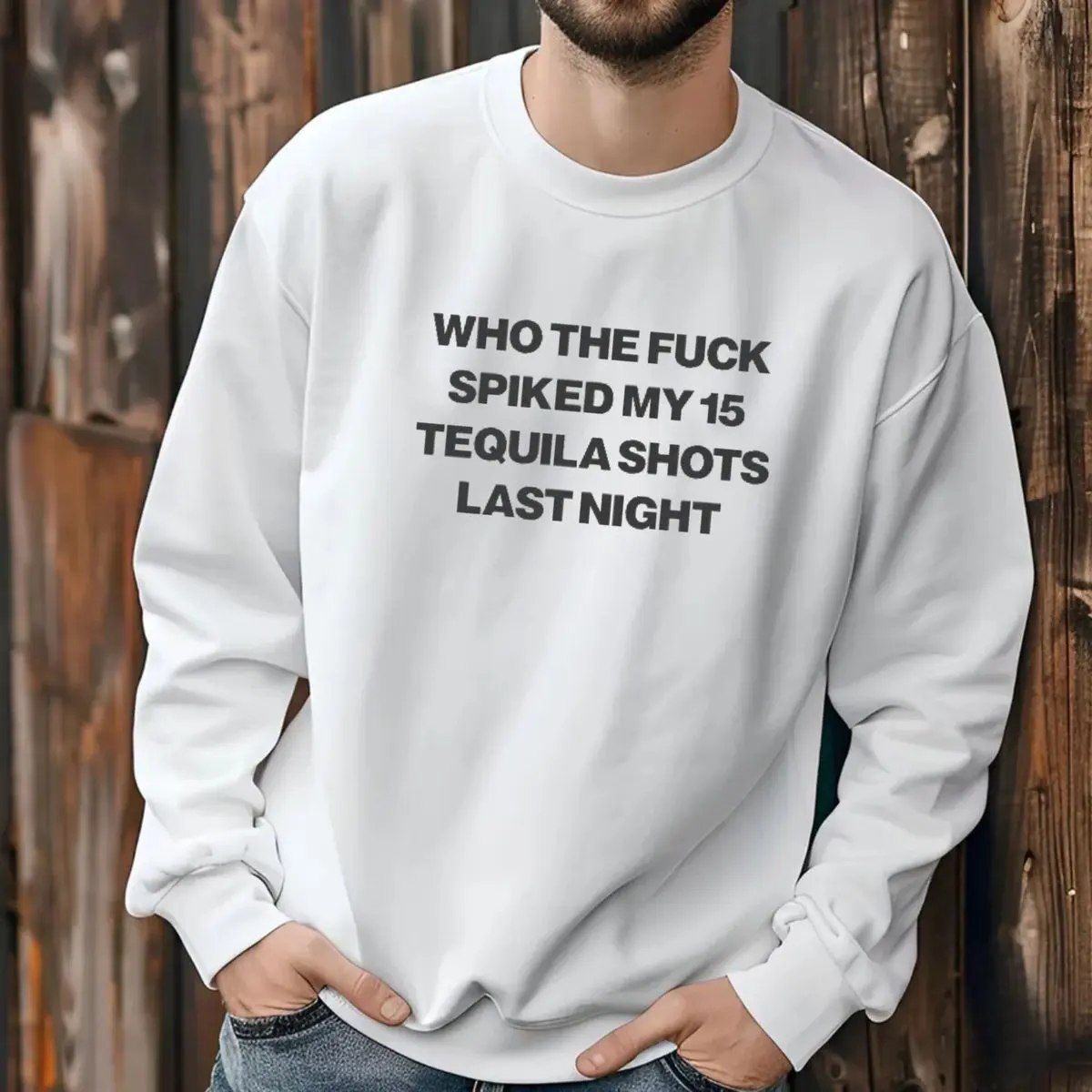 Who spiked my 15 tequila shots last night shirt, funny quotes, gift for men and women, unisex sweater pullover tee