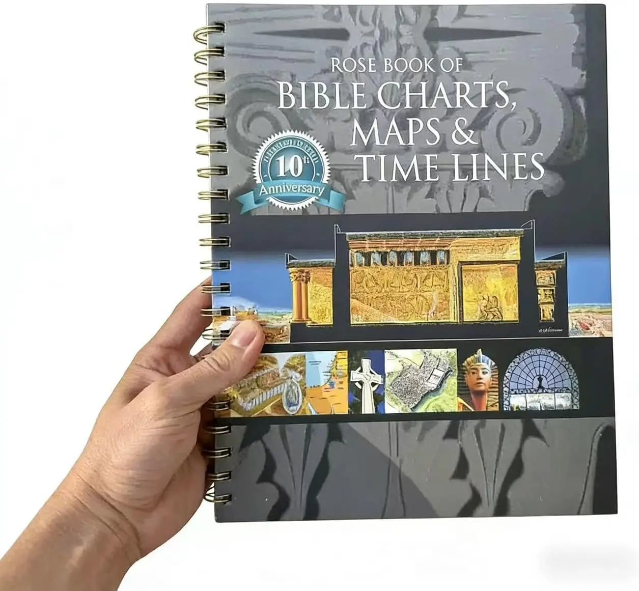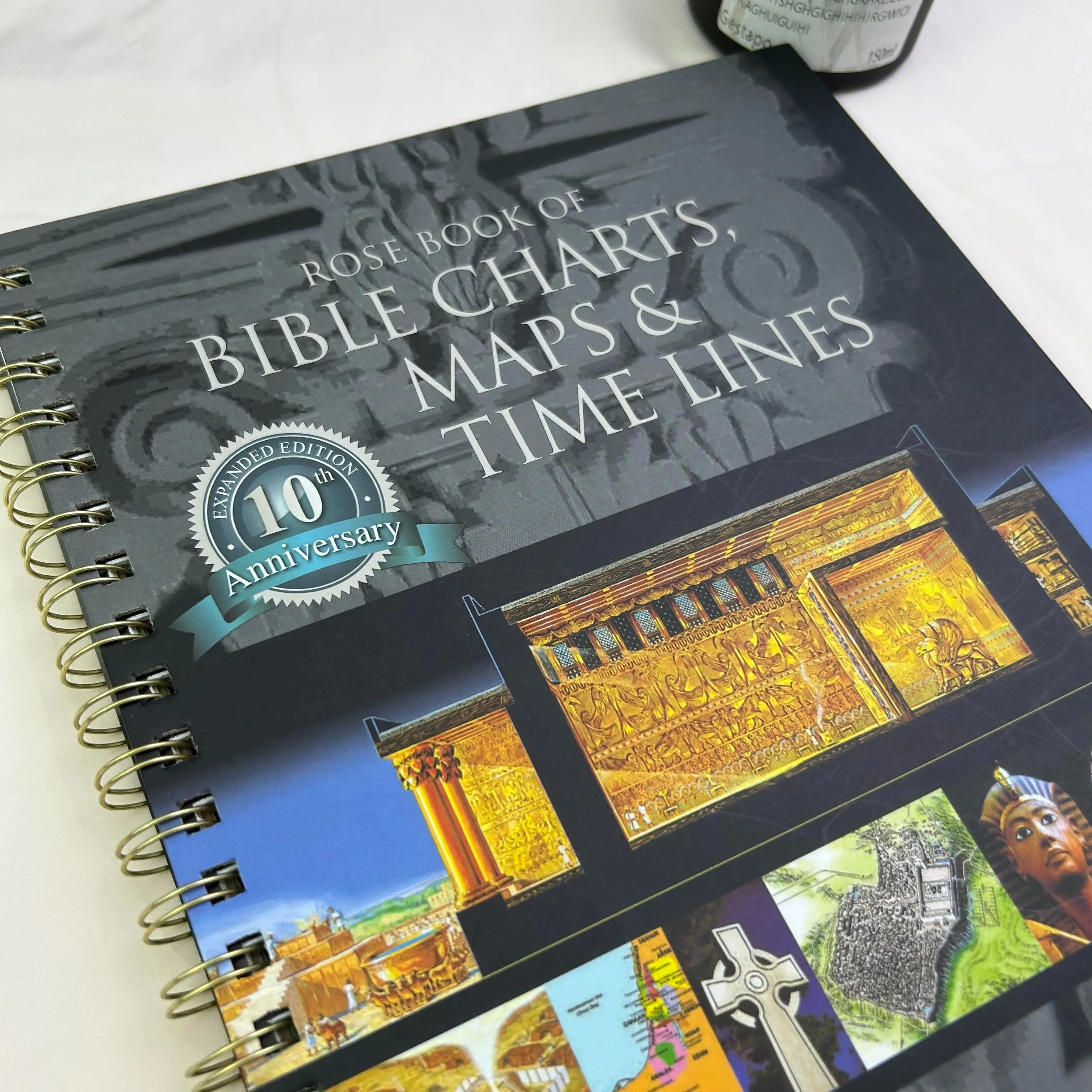 • Elevate your Bible study with the Rose Publishing Bible Charts, Maps & Time Lines—Spiral-Bound 10th Anniversary Edition. A essential resource for every Christian learner, pastor, and Bible study group, this special edition celebrates a decade of faithful, clear Bible teaching. It combines all the beloved original content with the added convenience of spiral binding for a smoother, more practical study experience.