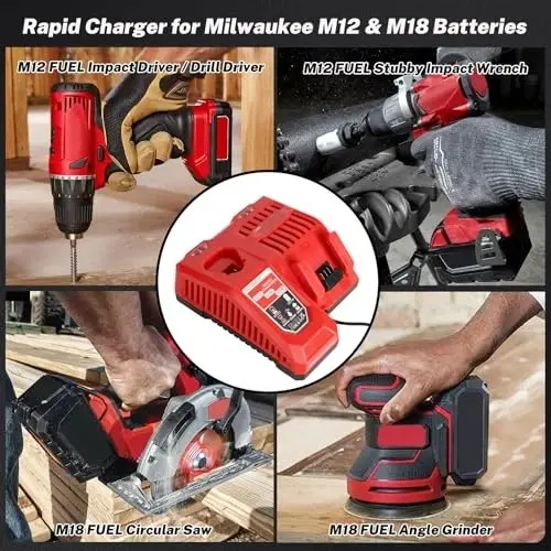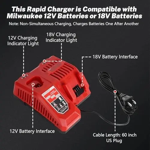 Power Tool Battery Chargers Compatible With Milwaukee M12 Battery Charger (For 48-11-2401, 48-11-2420, 48-11-2440, 48-11-2430, 48-11-2460, 48-11-2402, Etc.), Mewryytuo Tools Charger Compatible With Milwaukee M18 Battery Charger (For 48-11-1828, 48-11-1840, 48-11-1850, 48-11-1860, 48-11-1865, 48-11-1820, Etc.).