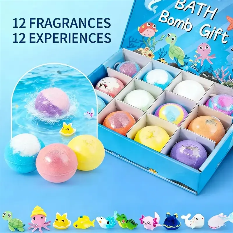 Land, Sea & Air Adventure Theme – Each set includes 12 individually wrapped bath bombs featuring animals and objects from land, sea, and air. A fun way to spark conversations about nature and exploration.