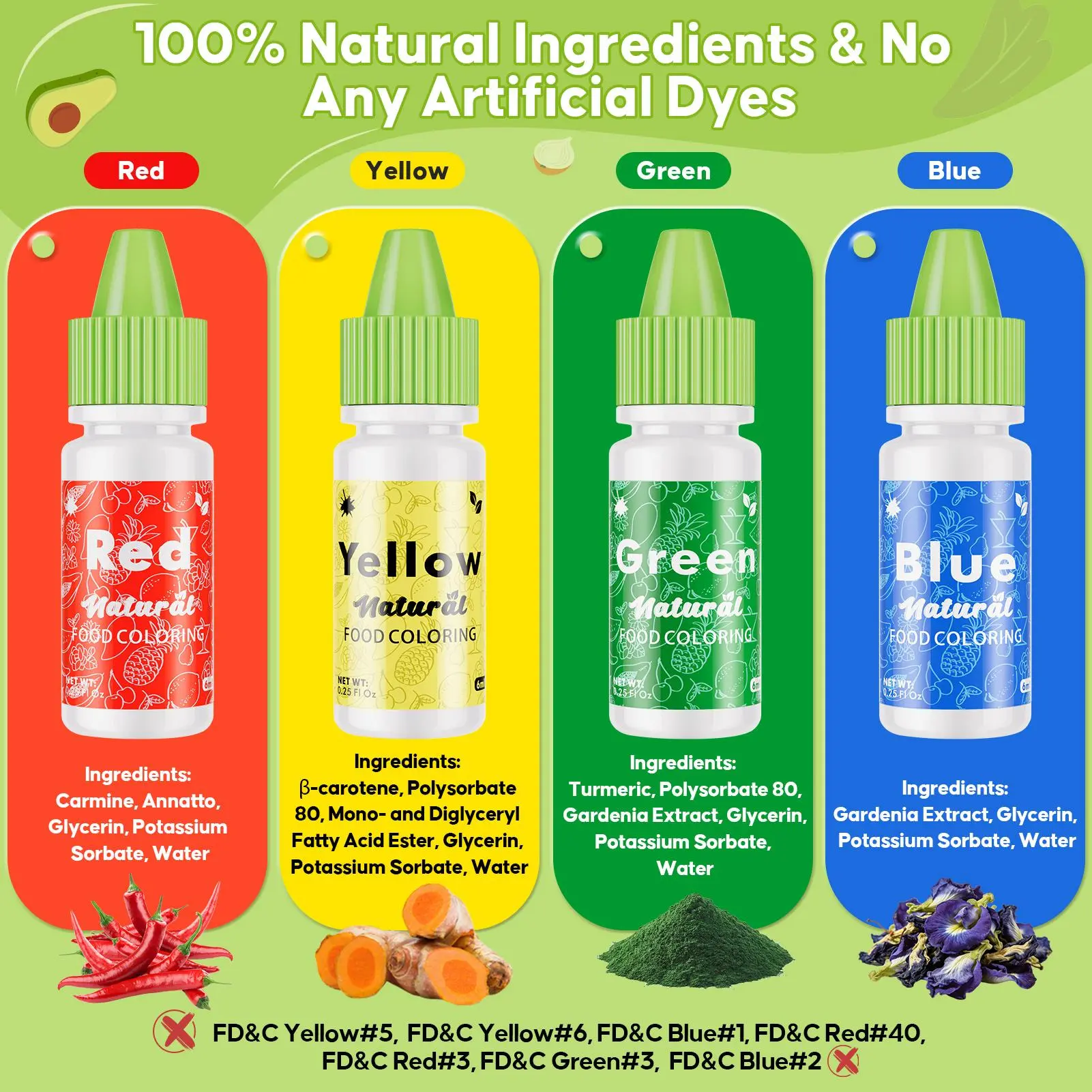 Plant-Derived & Dye-Free: Made from turmeric, gardenia extract, and β-carotene, this plant based food coloring is FD&C free and artificial dye free. A clean, safe natural food coloring choice for family baking and Easter baking supplies.
