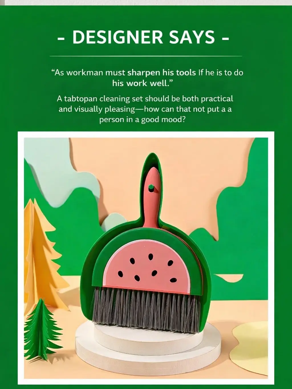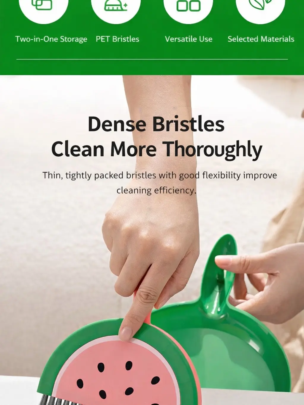 This broom set comes in bright, kid-friendly colors like green watermelon, yellow lemon, and pink. The fun, vibrant design makes cleaning a more enjoyable task for children, encouraging them to take responsibility for their space.