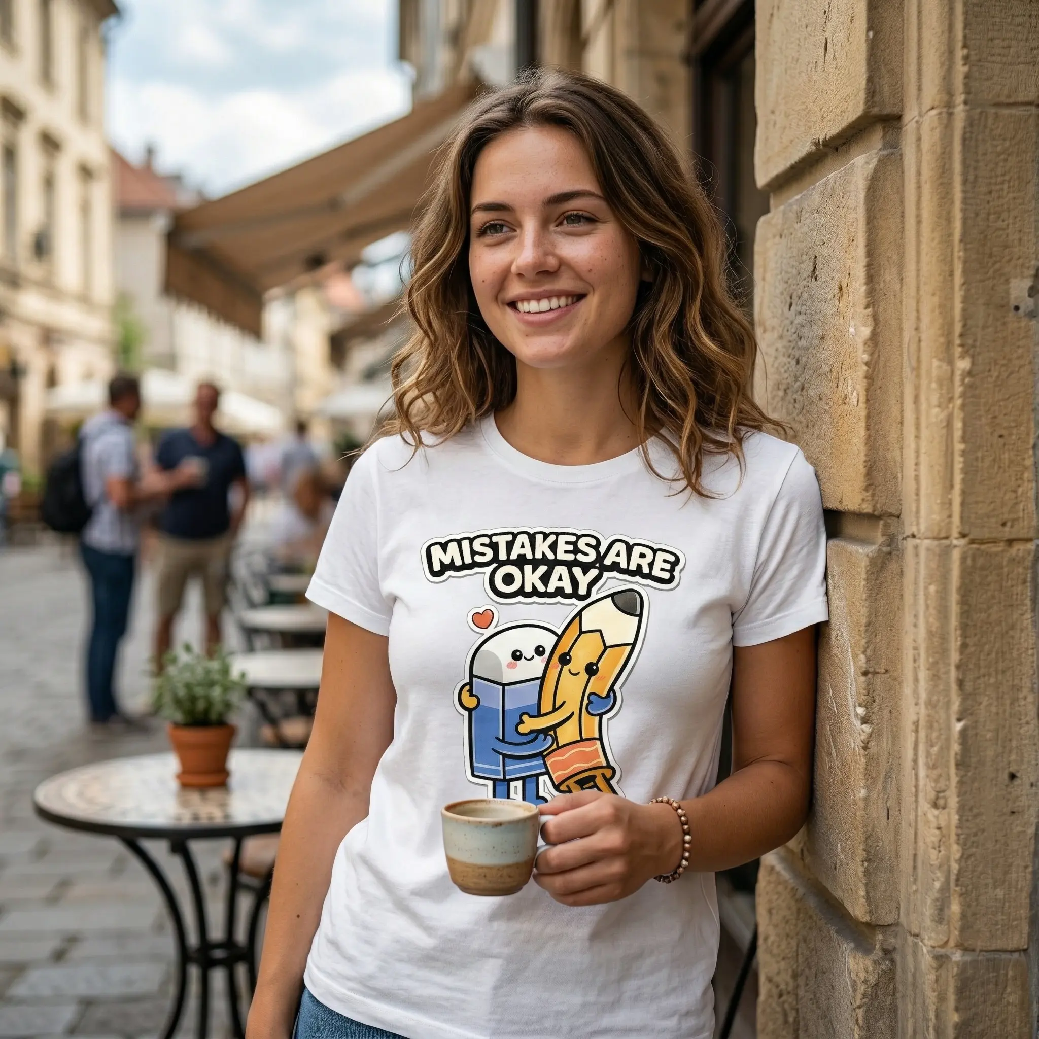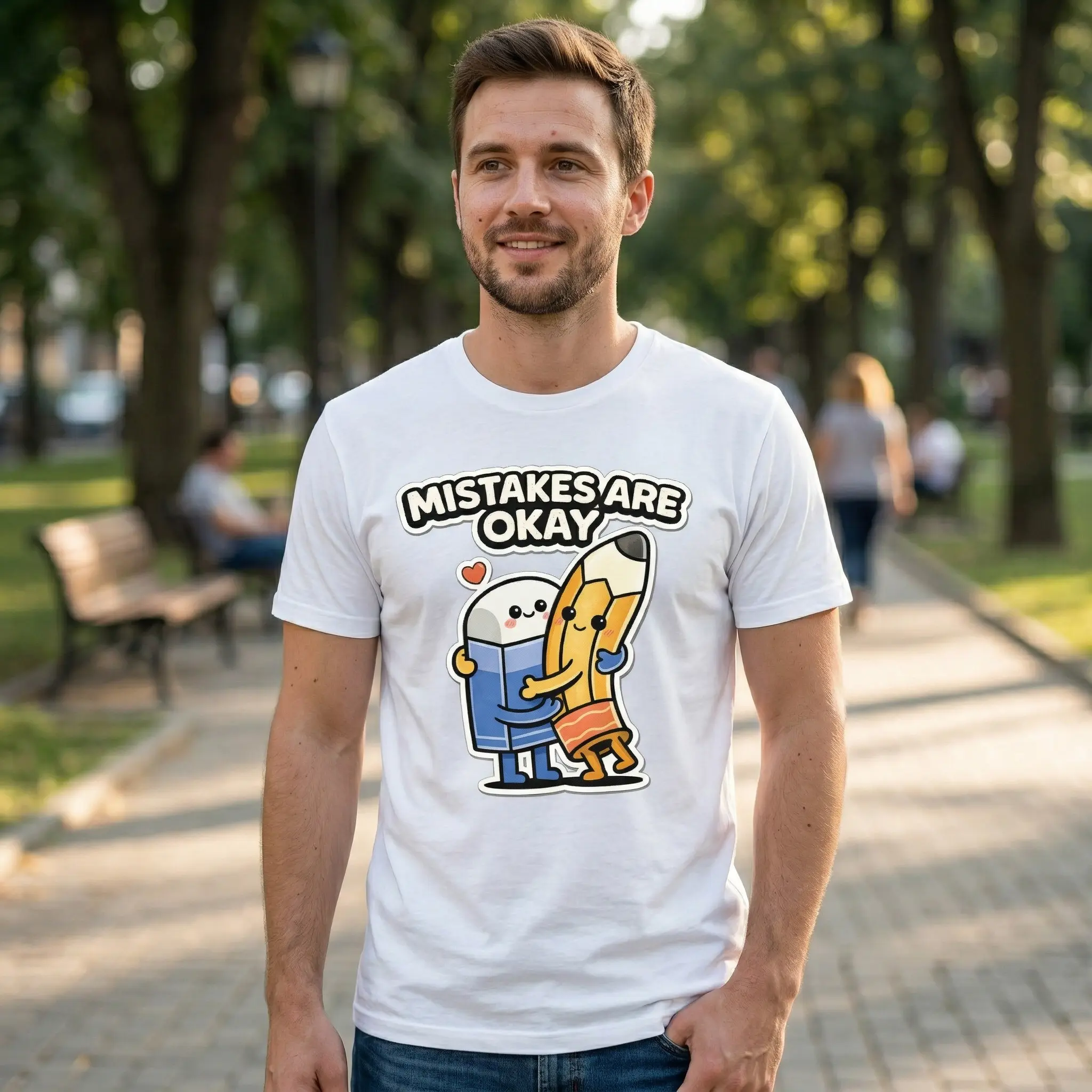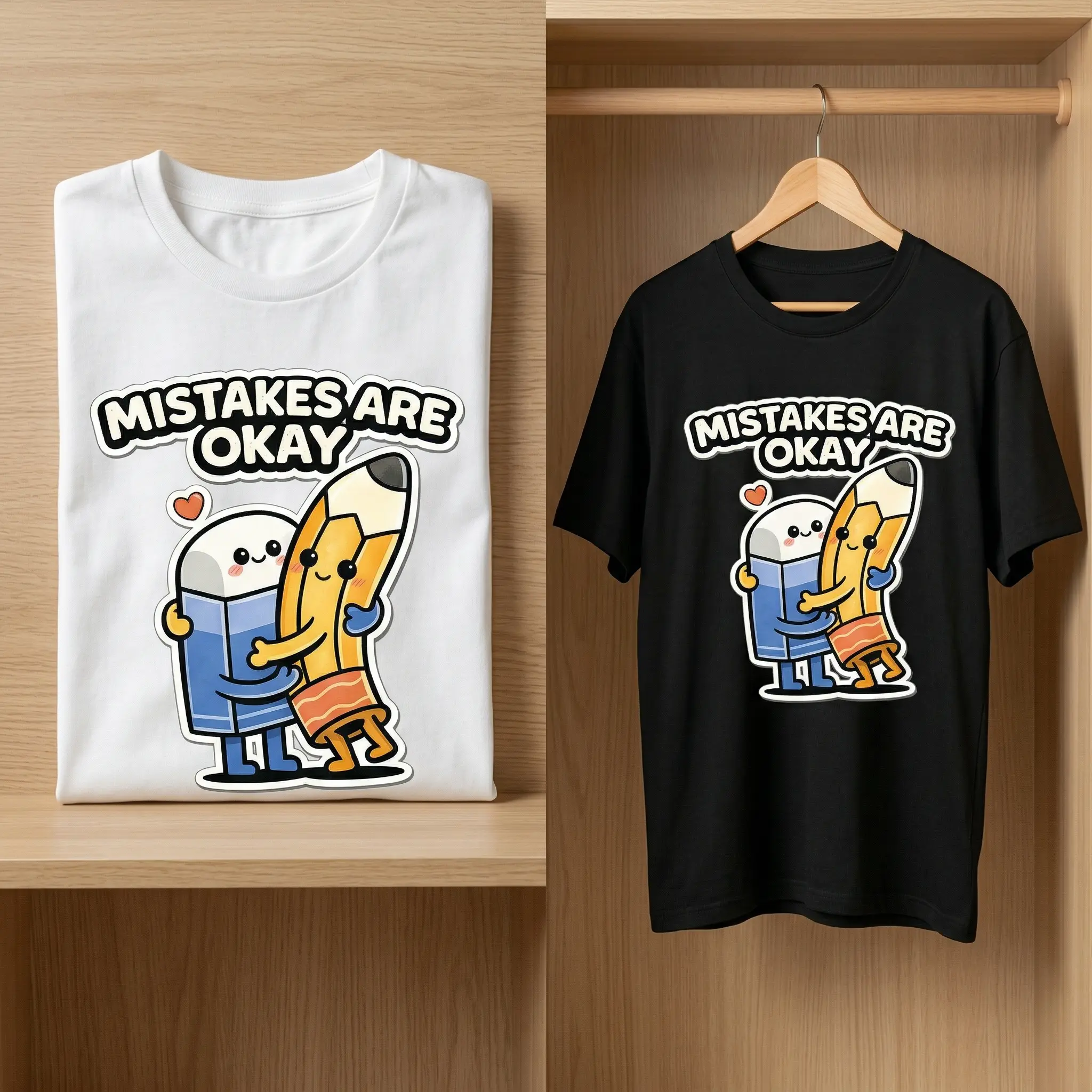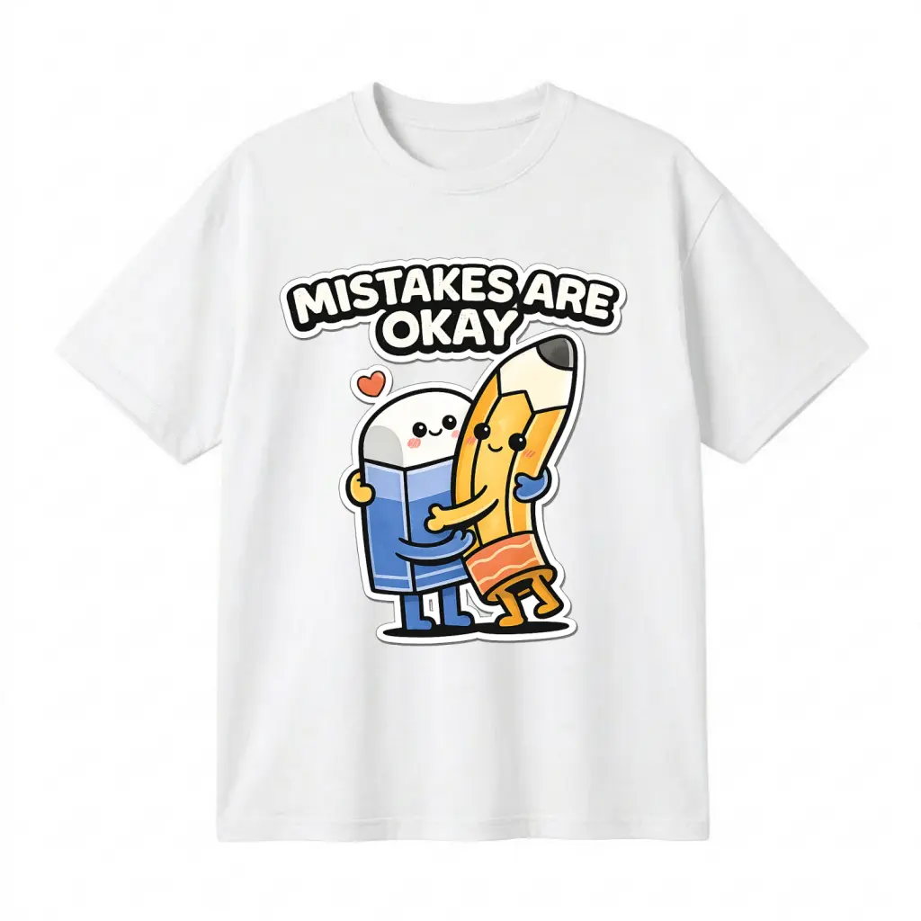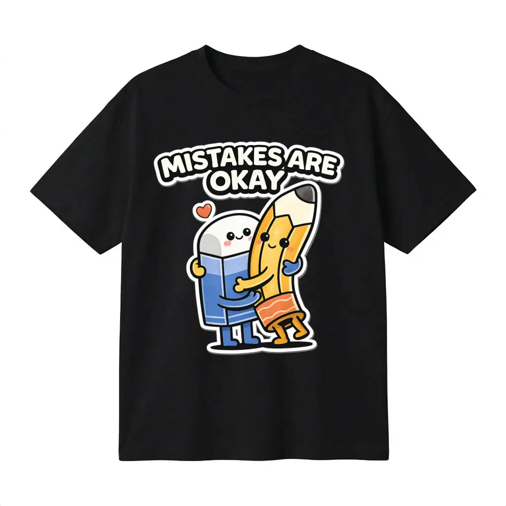 This unisex T-shirt features a playful graphic print. It includes a cute pencil and eraser hug design, perfect for a lighthearted vibe. The oversized fit makes it ideal for casual streetwear. Ideal for those who appreciate humor in their fashion.