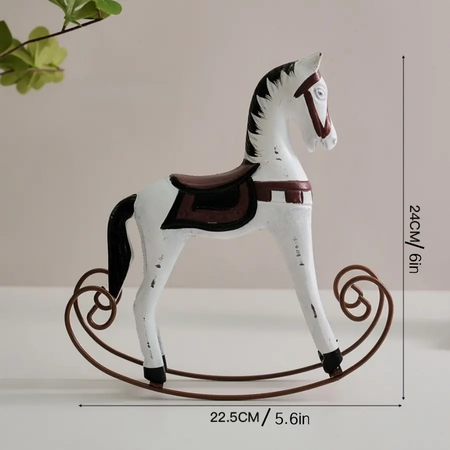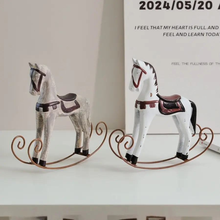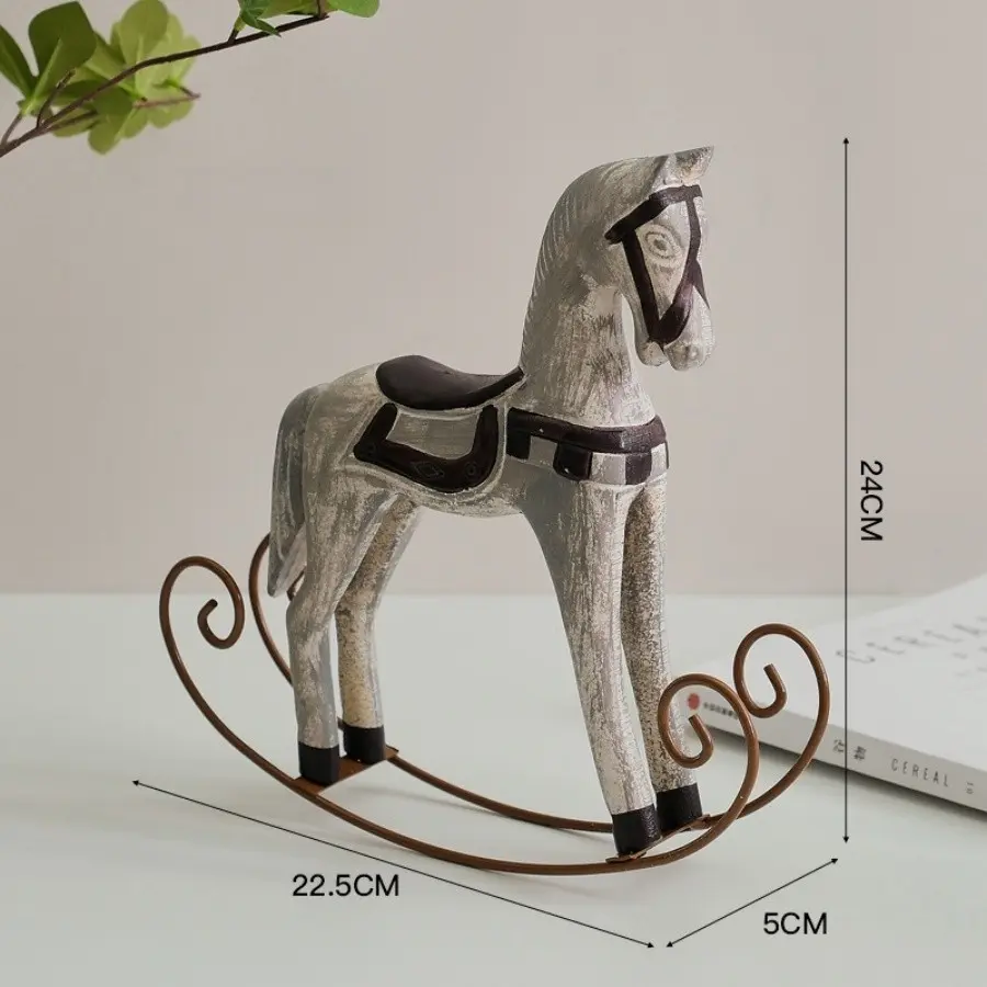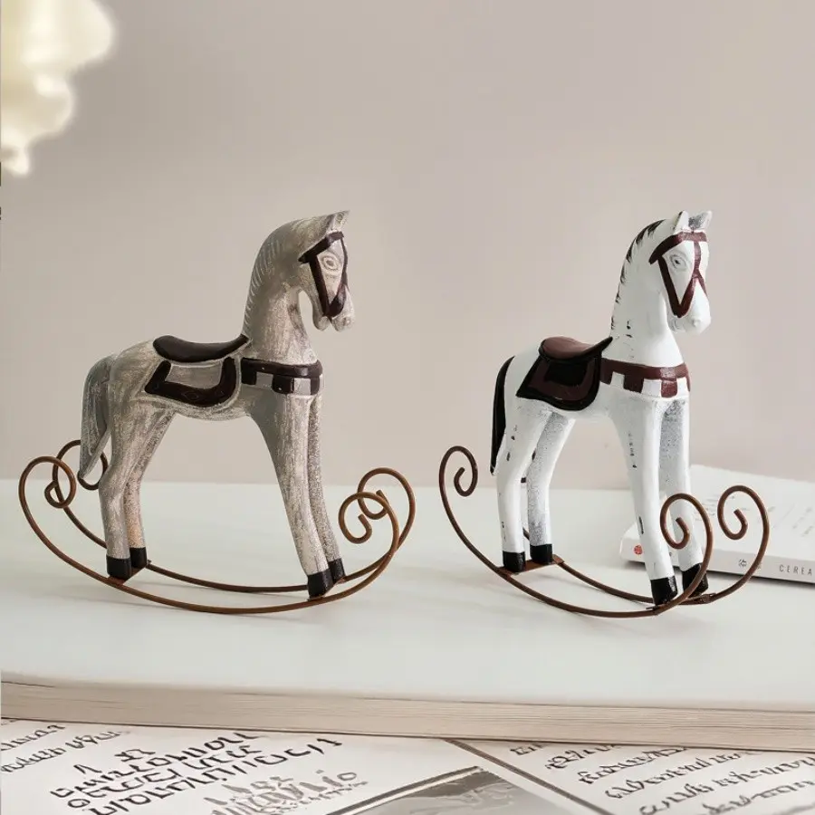 Wooden Rocking Horse Decorative Piece, Vintage Colorful Small Wooden Horse for Home Kids Room, Desktop Ornament, Natural Wood Material