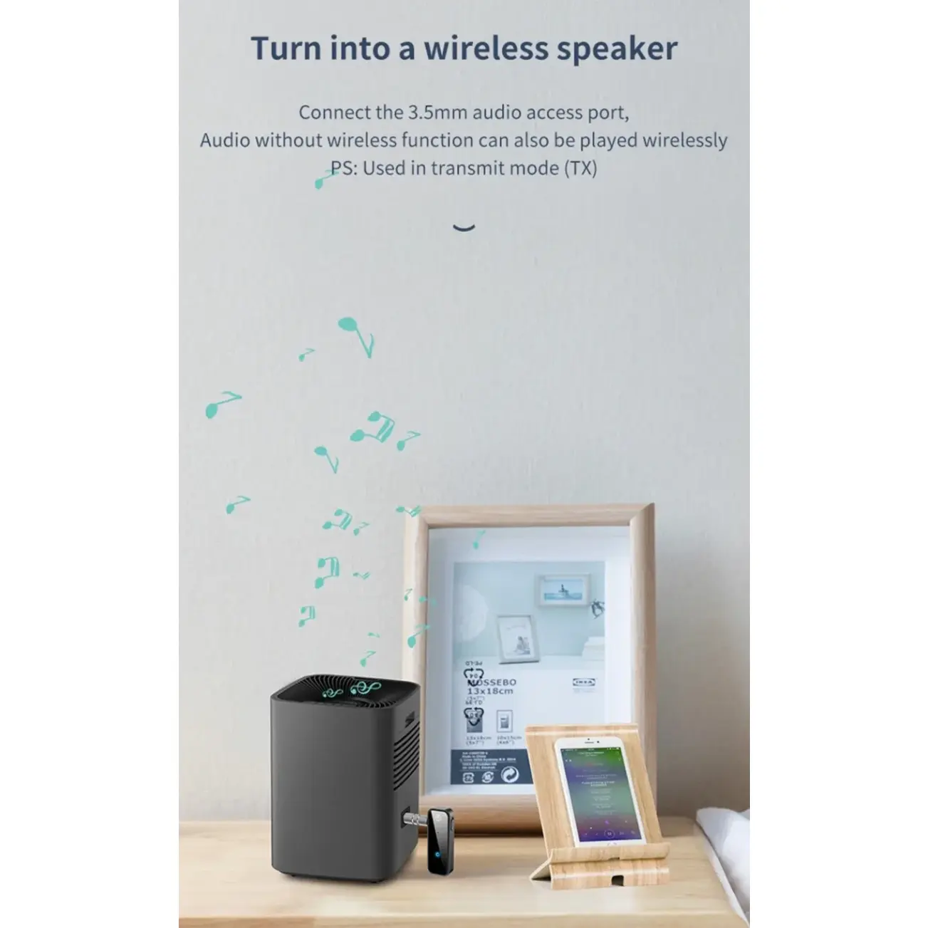 1.BLUETOOTH COMPATIBLE:This audio Bluetooth adapter support 3.5mm aux audio, and also compatible with all smartphones, bluetooth audio devices (Bluetooth headphones, Bluetooth speakers and much more), and stereo equipment with audio input port. By pressing the button on the center front, the receive device will start to pair to the next Bluetooth device.