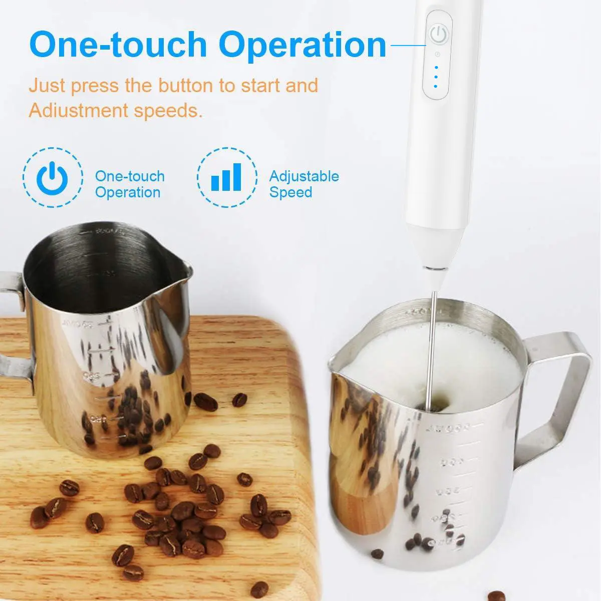 MINI Milk Frother USB Rechargeable 3 Speeds Foam Maker Coffee Whisk Mixer Electric Handle Blender Egg Beater