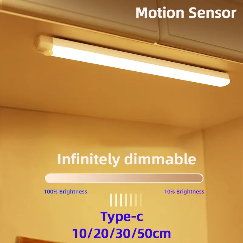 Motion Sensor Lamp Night Light Wireless LED USB Type C Rechargeable Lamp for Kitchen Cabinet Bedroom Wardrobe Staircase Lighting