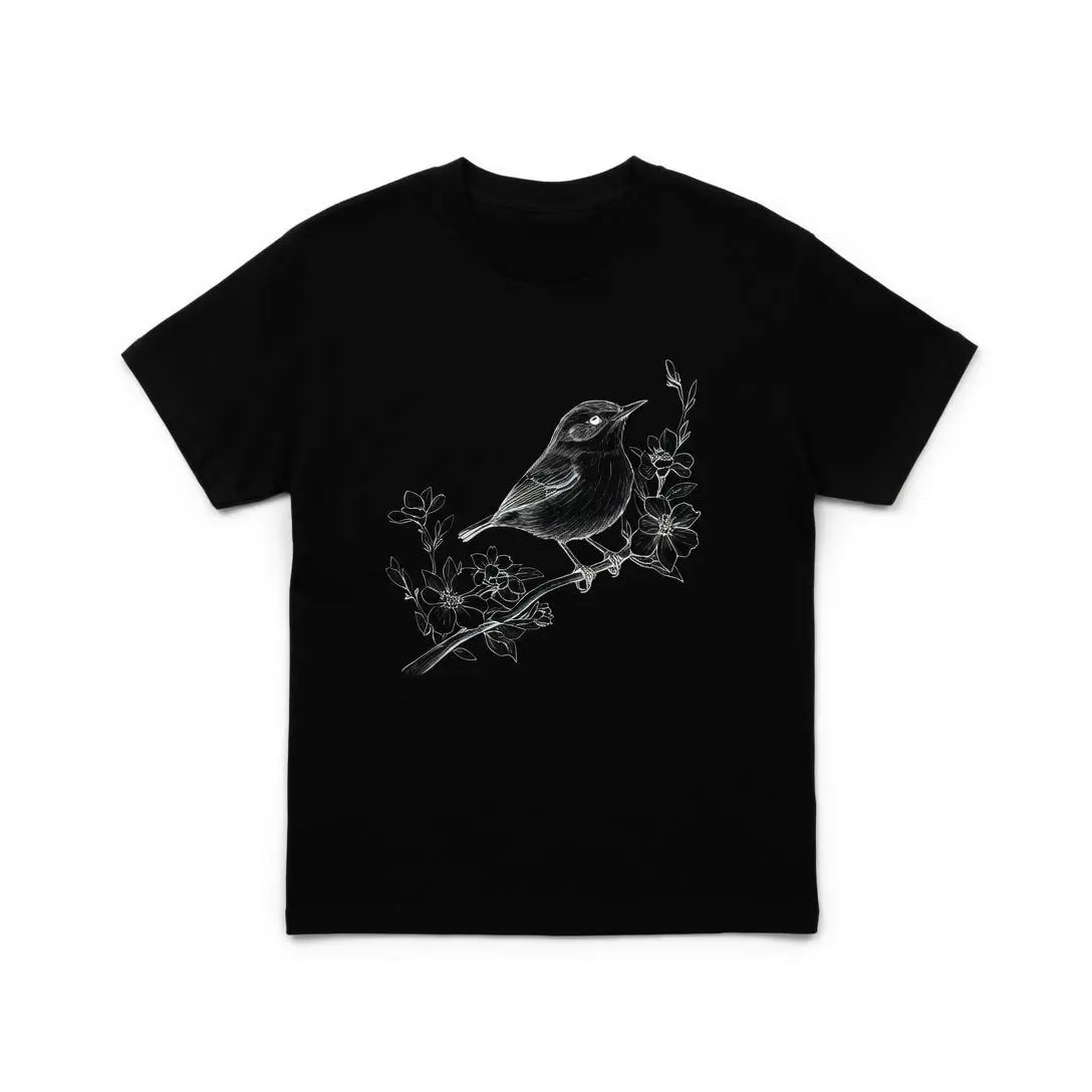 5. Botanical Bird Graphic Tee for Nature Lovers Vintage Illustration Top Wildflower & Songbird Apparel for Ornithology Enthusiasts Comfy Fitted Short Sleeve Crew Neck Summer T-Shirt - Womenswear