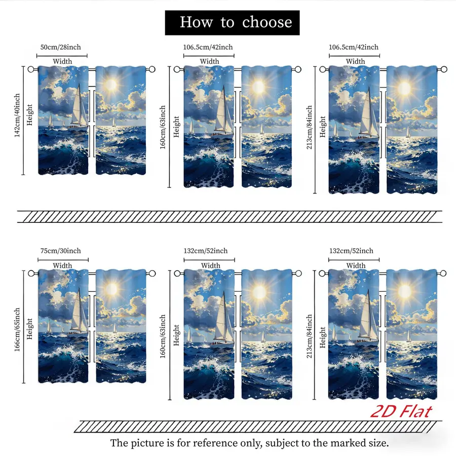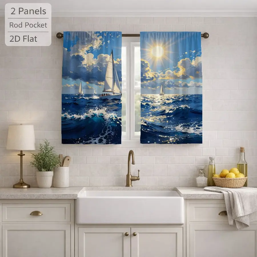 2Pcs Nautical Ocean Seascape Sailboat Sun Blocking Curtains Digital Printed Rod Pocket, Window Treatment For Bedroom Office Kitchen Living Room Study Home Decor