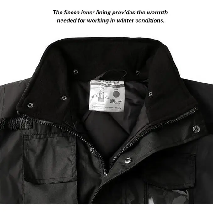 Polyester, 300D Oxford with PU Coating Material, CottonImportedSurface material: Polyester, 300D Oxford with PU Coating Material? ?Windproof, waterproof, anti -stains, when work or other scenarios are used to resist tearing, Under the premise of ensuring durability, at the same time, we can keep warm and keep you dry. Compliant with ANSI/ISEA 107-, Type R Class 3.Internal material: high quality cotton provides the warmth needed for working in winter conditions.MULTI-FUNCTION COMBINATION POCKET:
