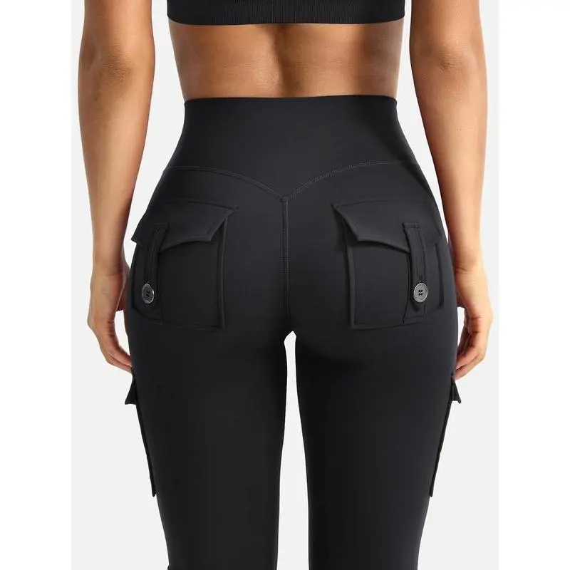 Women Workout Flare Leggings with Pockets Hidden High Cargo Gym Yoga No Front Seam Leggings