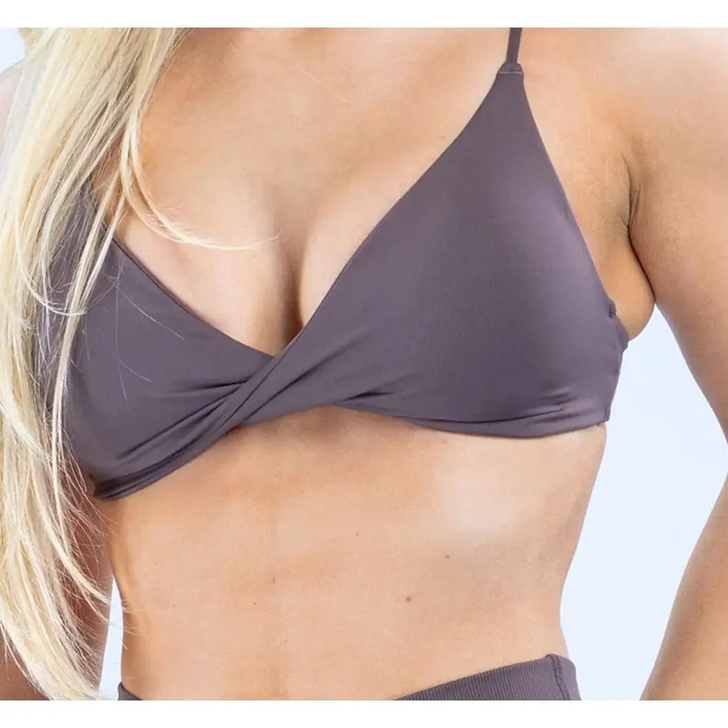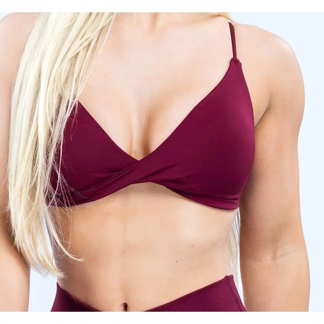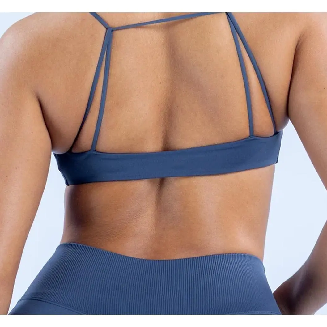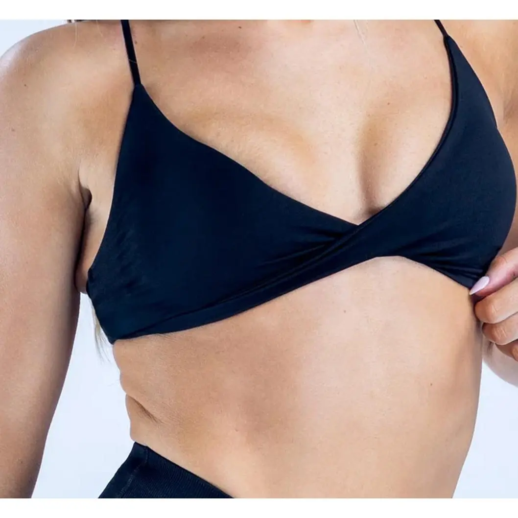 DFYNE Seamless Thin Strap Bandeau Top | Front twisted back design for a supportive and flattering look, high elasticity and skin-friendly fabric that won't dig into your shoulders, providing a bare-skin feel during exercise.
