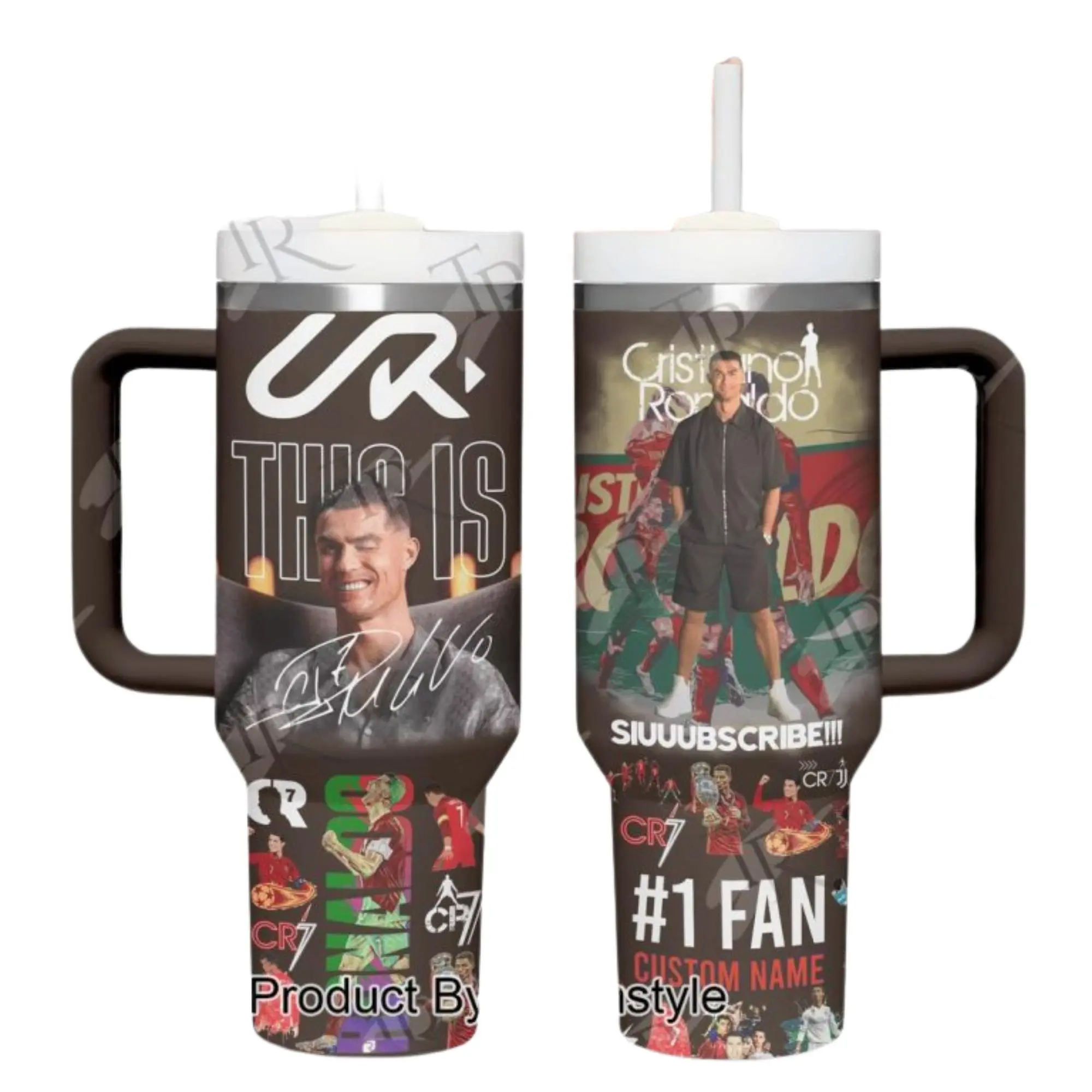 5. Ronaldo Soccer Tumbler Football Fan Bow Cup with Handle Manga Lover Insulated Travel Mug Gift For Her or Him