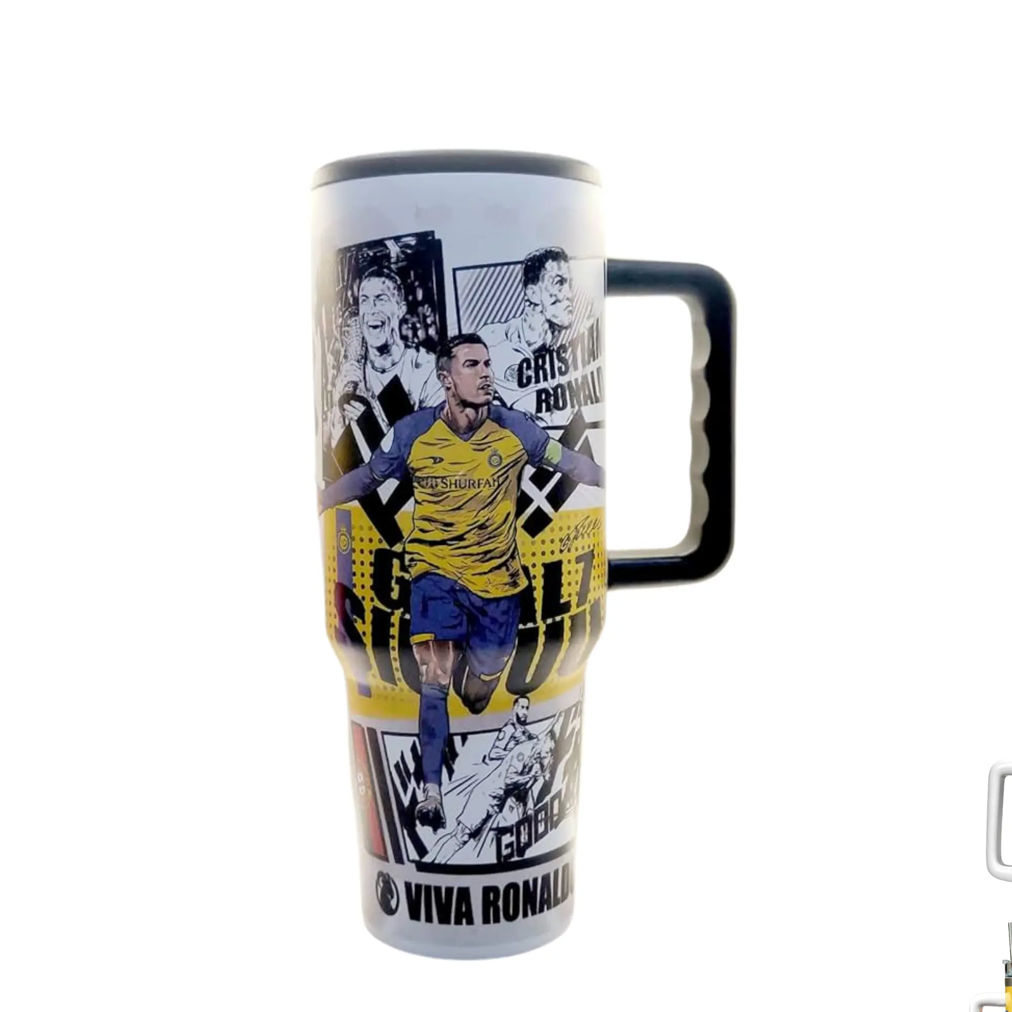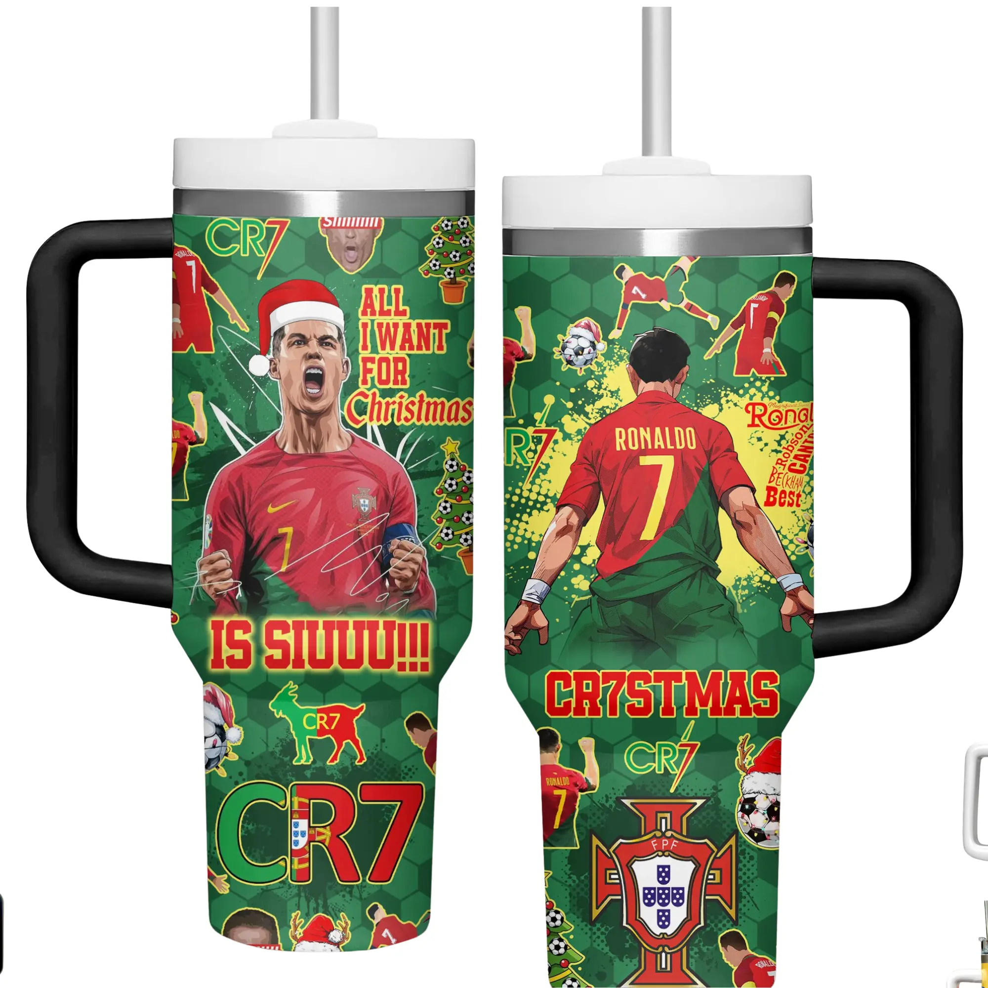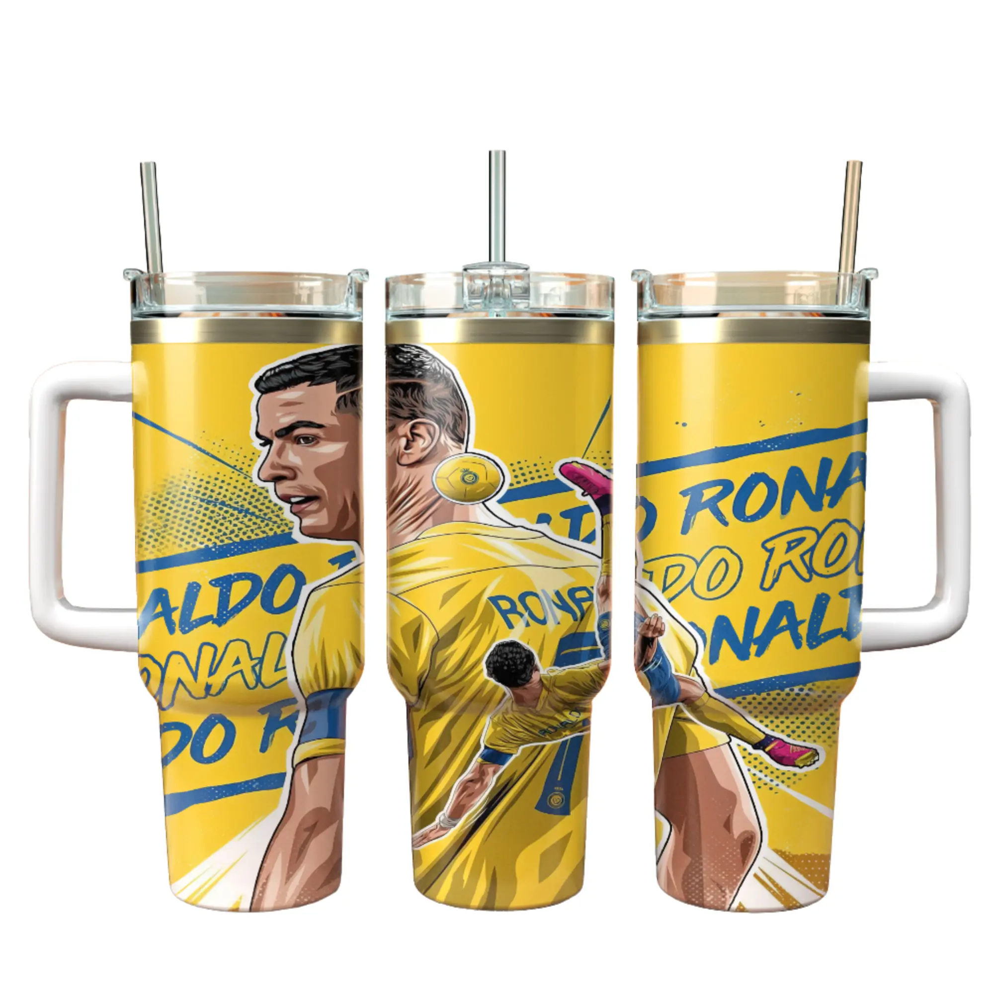 Ronaldo Soccer Tumbler Football Fan Bow Cup with Handle Manga Lover Insulated Travel Mug Gift For Her or Him