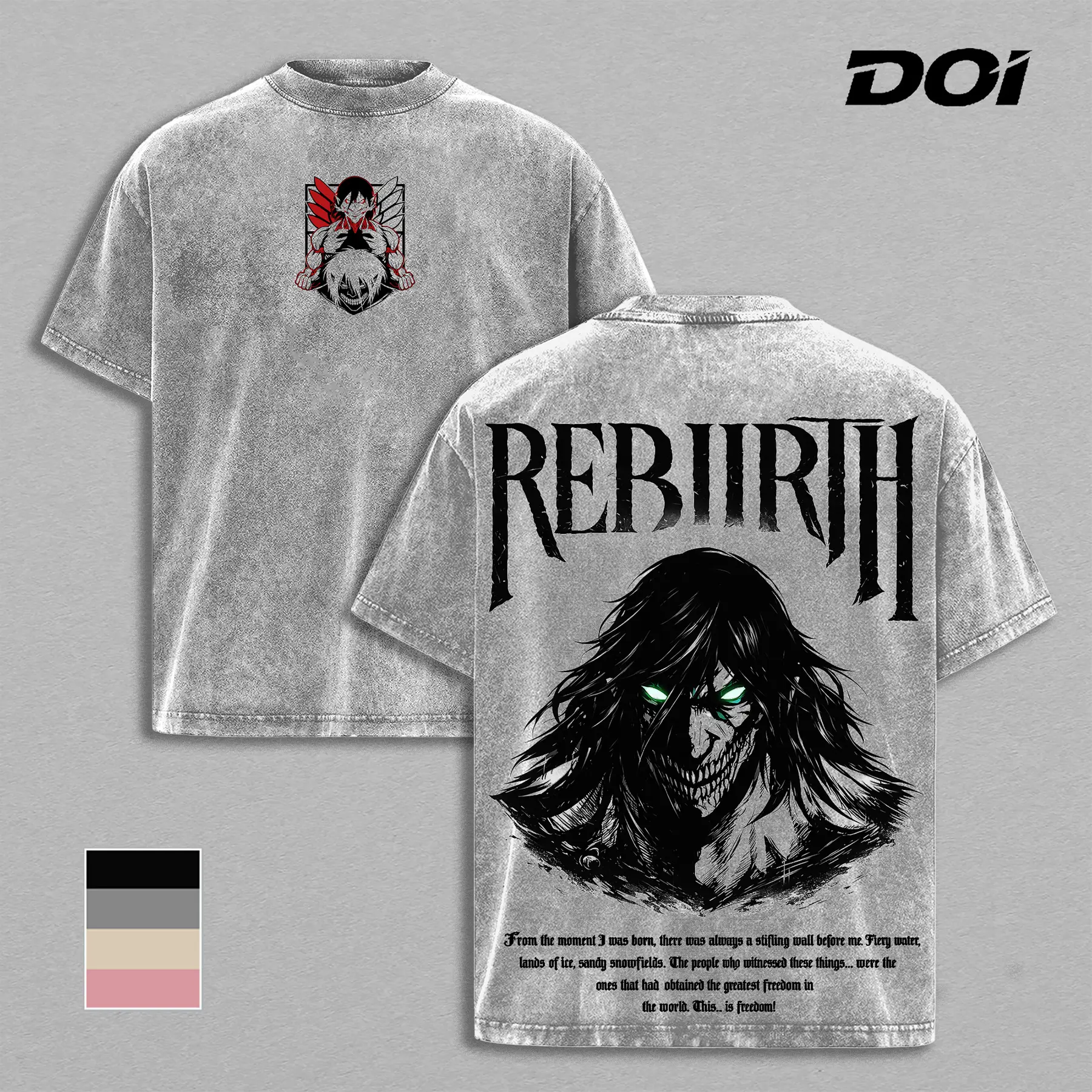 Eren Yeager Attack on Titan Anime Graphic Tee Vintage Washed Boxy Fit T-Shirt Titan Transformation Dark Rebirth Design Streetwear Style Heavyweight Cotton Unisex Shirt Gift for AOT Fans