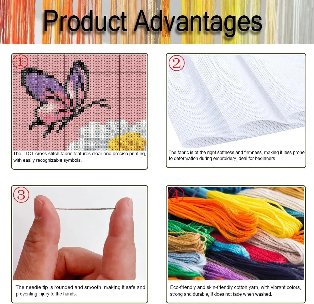 ·【EASY TO STITCH】This kit includes a timeless and simple cross-stitch design(pre-printed pattern)with simple, easy-to-follow instructions, perfect for those who are new to cross-stitch. Blunt head needle, wouldn't hurt hands.