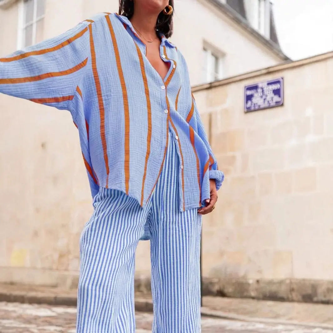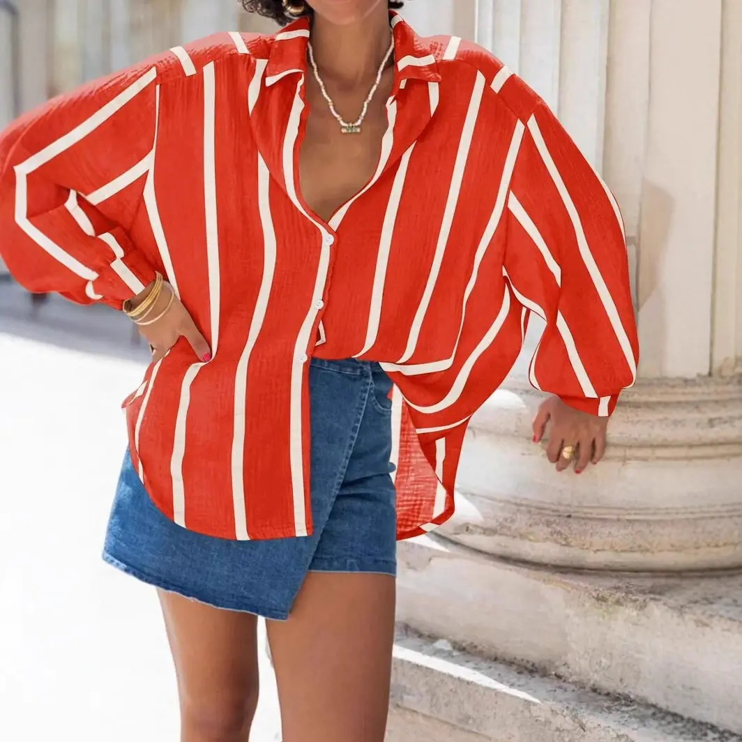 2026 European and American autumn and winter new long-sleeved button-up cardigan women's striped shirt women's vintage striped