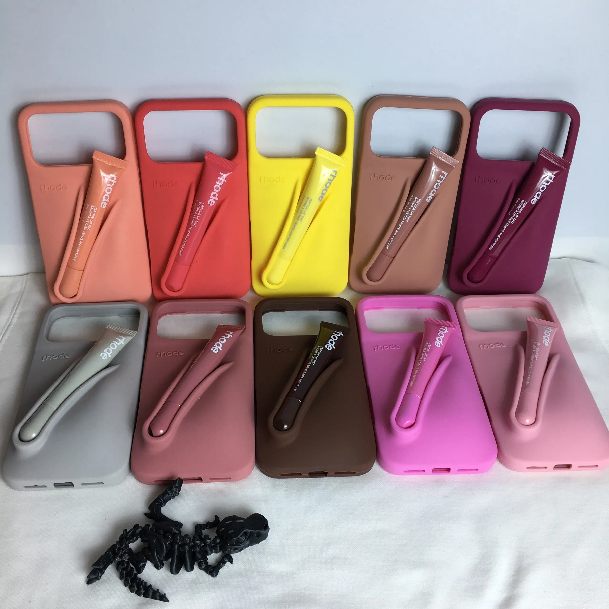 Trenđy Rhode Lip Case Set for iPhone, Silicone Phone Case with Lipstick, Matte Soft Cover, Aesthetic Phone Case Gift