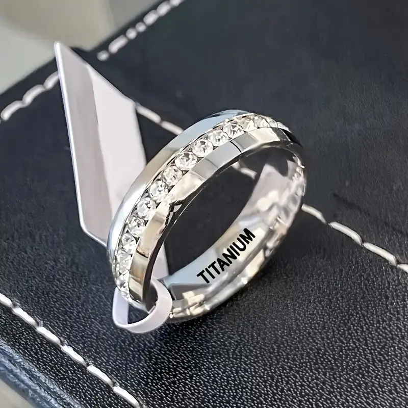 This 1-piece ring is crafted from titanium steel, featuring a single row of synthetic zircon.Perfect for couples, it serves as an engagement or wedding band.The ring is designed for daily wear and parties, suitable for year-round use.It's a versatile accessory for any occasion.🌟
