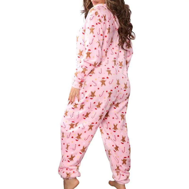 Christmas Hooded Jumpsuit for Women Zipper Fleece Pjs Family Holiday Adult Cozy Pajamas Sleepwear