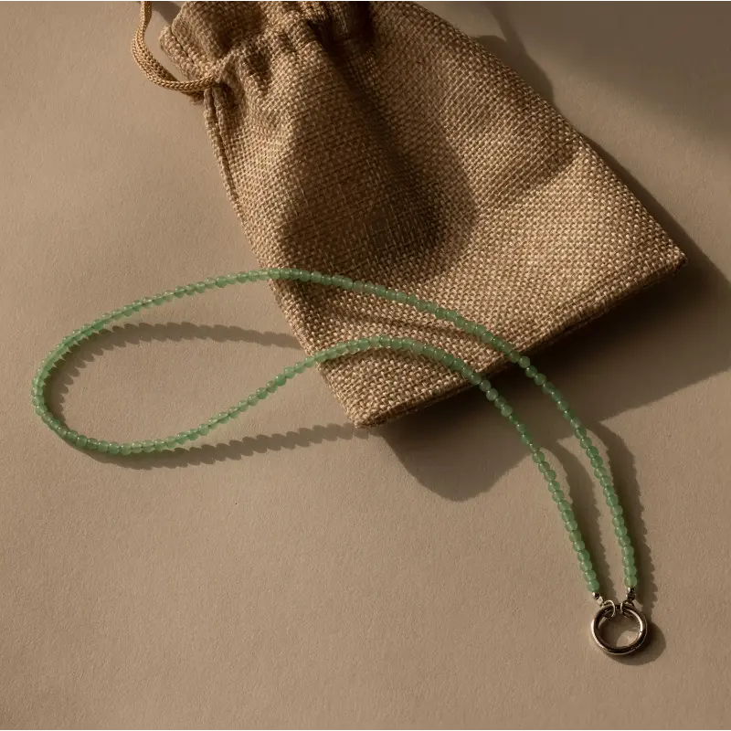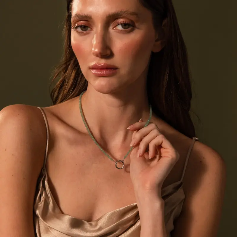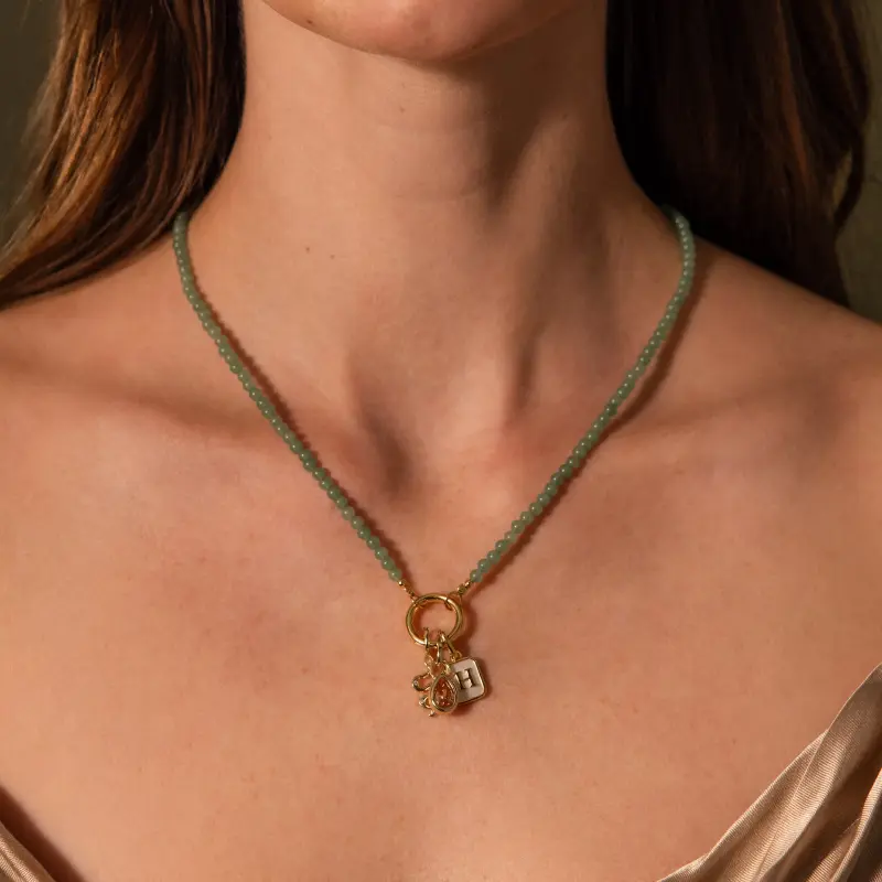 Introducing our Beaded Jade Charm Necklace, a soft statement with thoughtful detail. Delicate jade beads create a calm, natural rhythm around the neckline, finished with a polished circle clasp designed to be worn front and center. Subtle yet expressive, this piece blends organic texture with a modern silhouette, making it perfect for layering with charms or wearing on its own for a clean, elevated look.