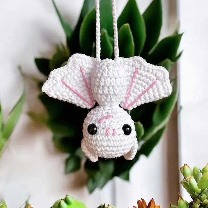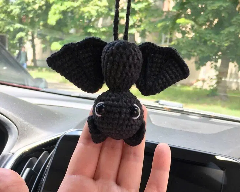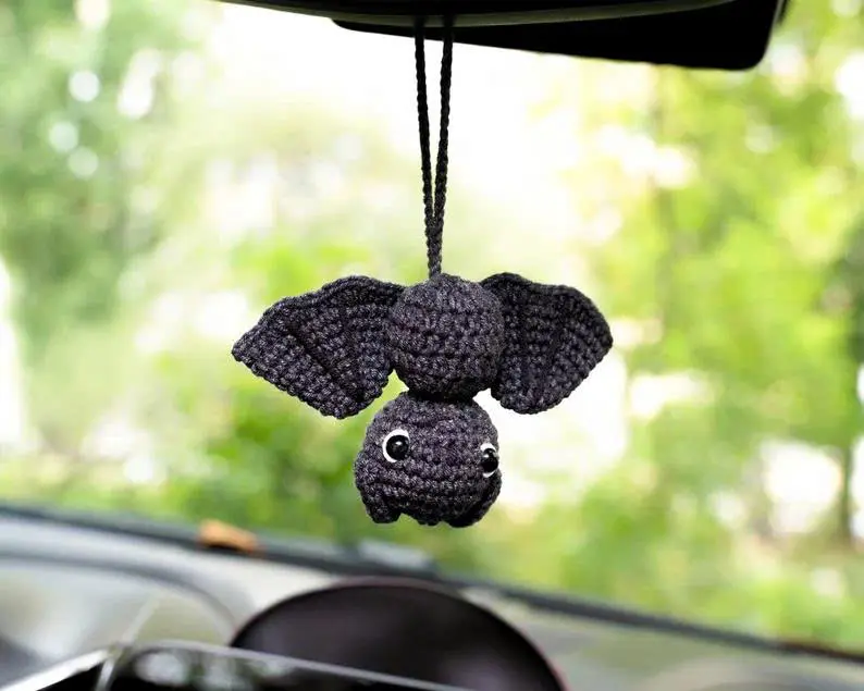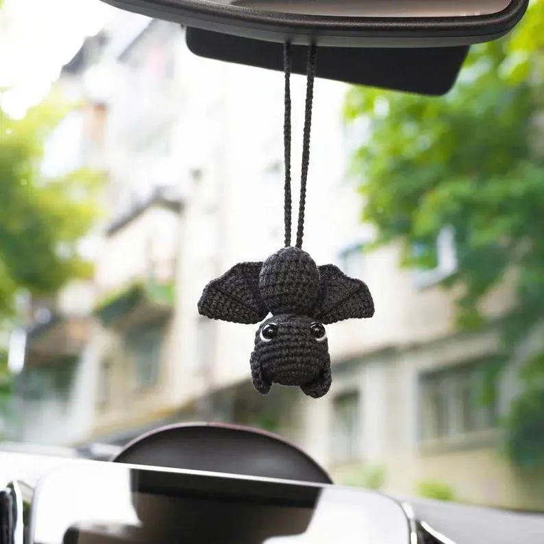 Goth Car Accessory Bat Plush Rear View Mirror Accessory for Women, Men, Teens, Cool Car Mirror Hanging Bat Car Decor, Crochet Car Charm