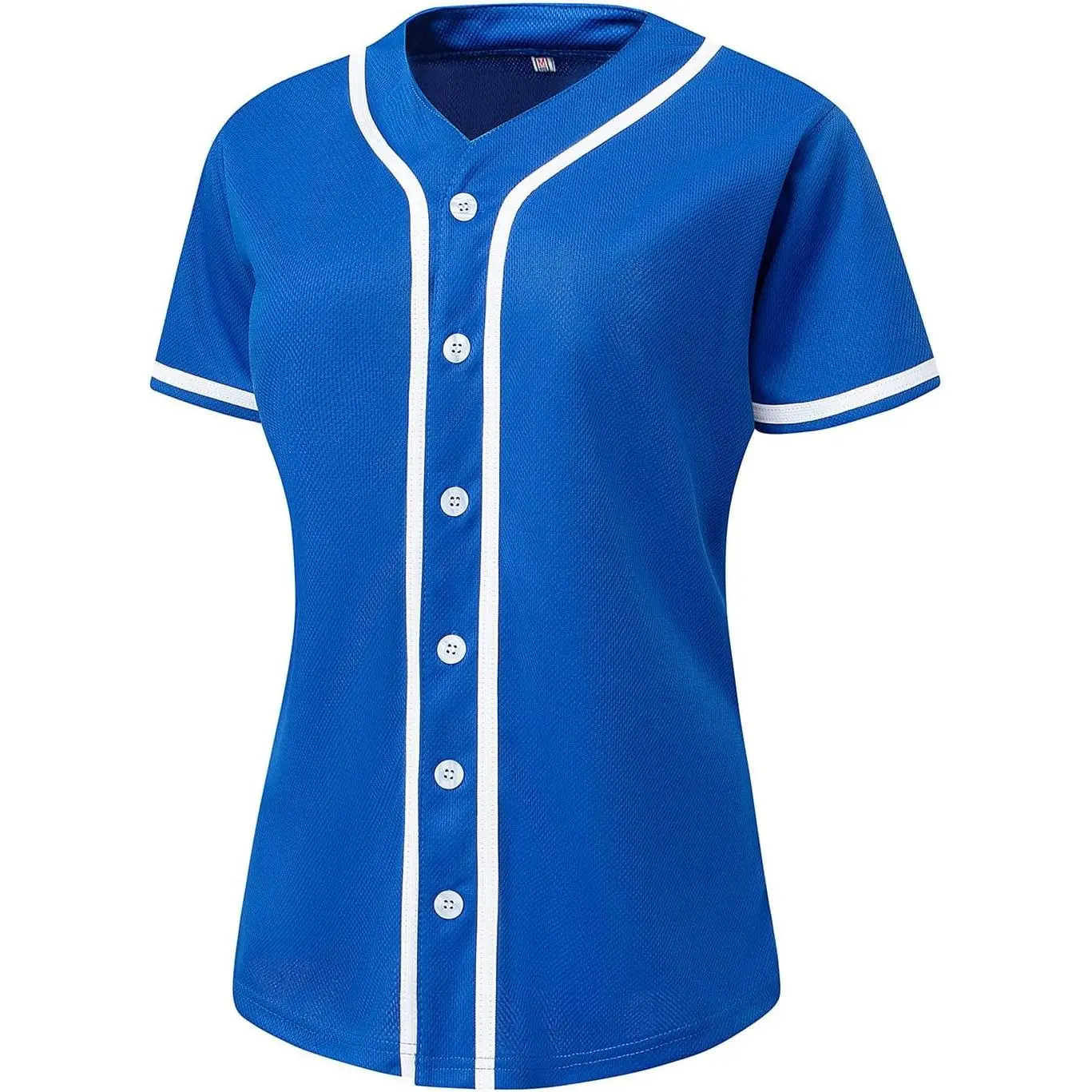 Womens Button Down Baseball Jersey, Blank Softball Team Uniform, Hip Hop Hipster Short Sleeve Active Shirts