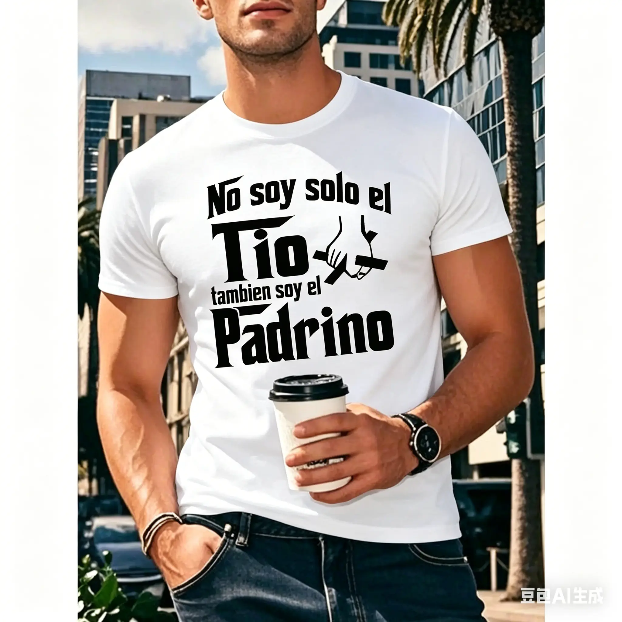 Men'S White "No Soy Solo El Tio, Tambien Soy El Papá" Graphic T-Shirt - Casual Summer Tee with Coffee Cup Design, Regular Fit, Light Stretch Fabric, Everyday Tshirt| Playful Text Design| Comfortable Fit, PLUS SIZE
