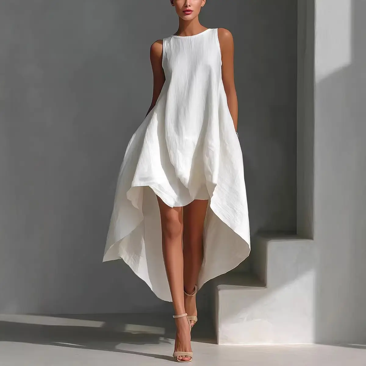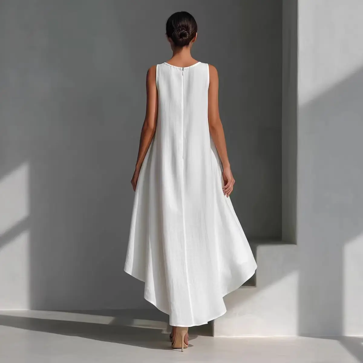 This dress is all about simplicity with intention — a modern silhouette that feels light, elegant, and quietly bold.