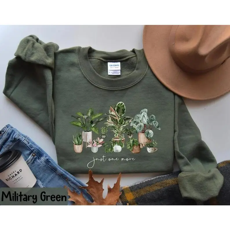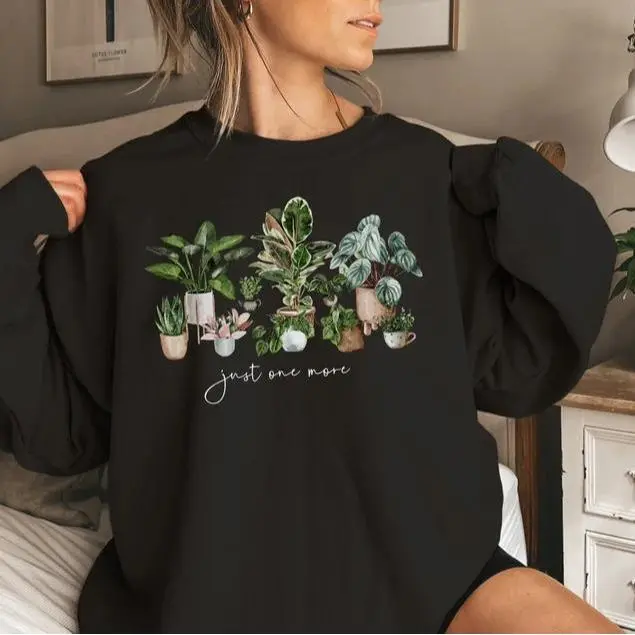 Plant Lady Sweatshirt, Just One More Plant Sweatshirt, Gardening Sweatshirt, Plant Lover Gift Cotton PolyesterGift