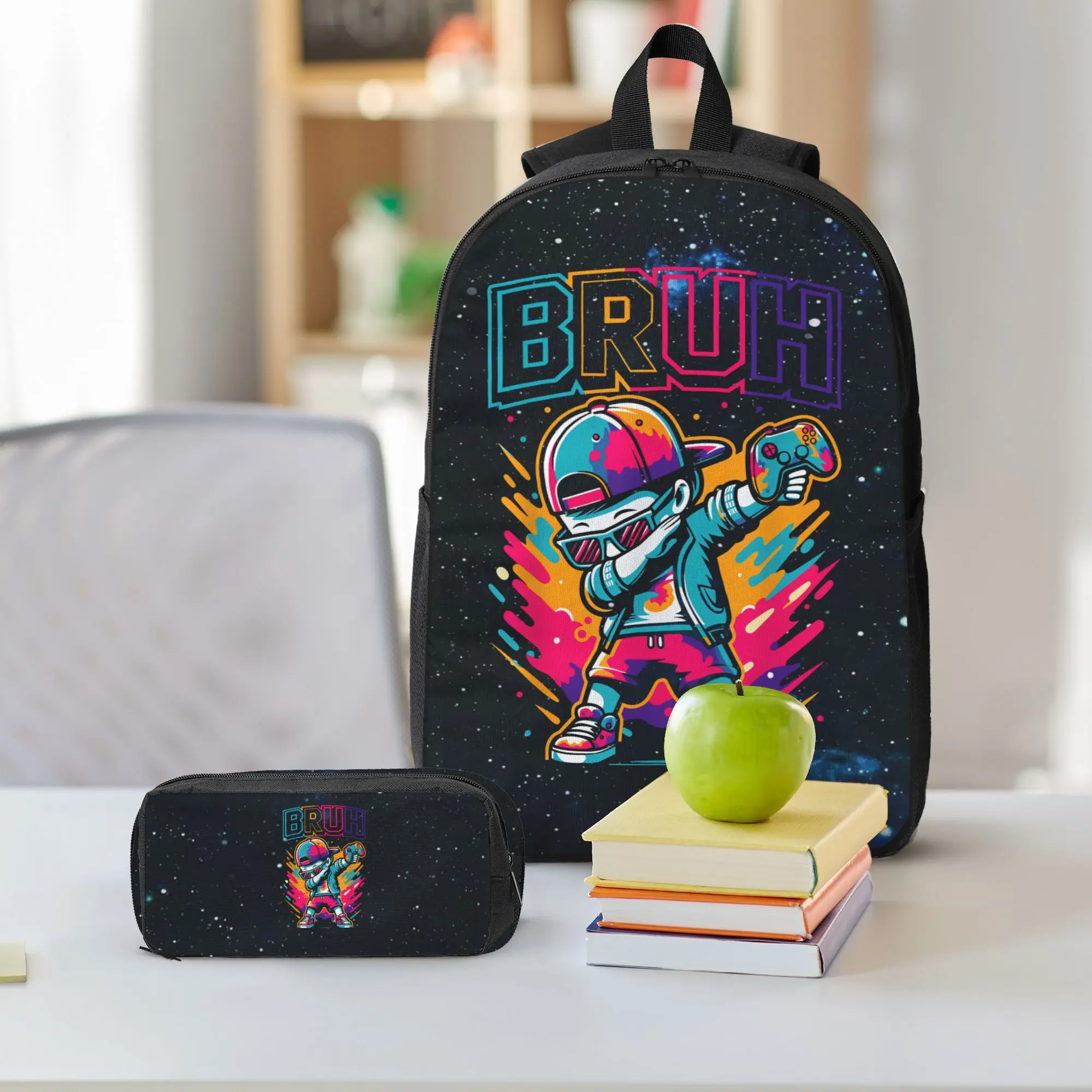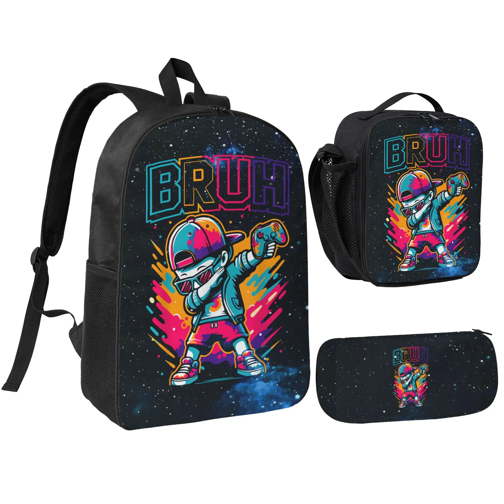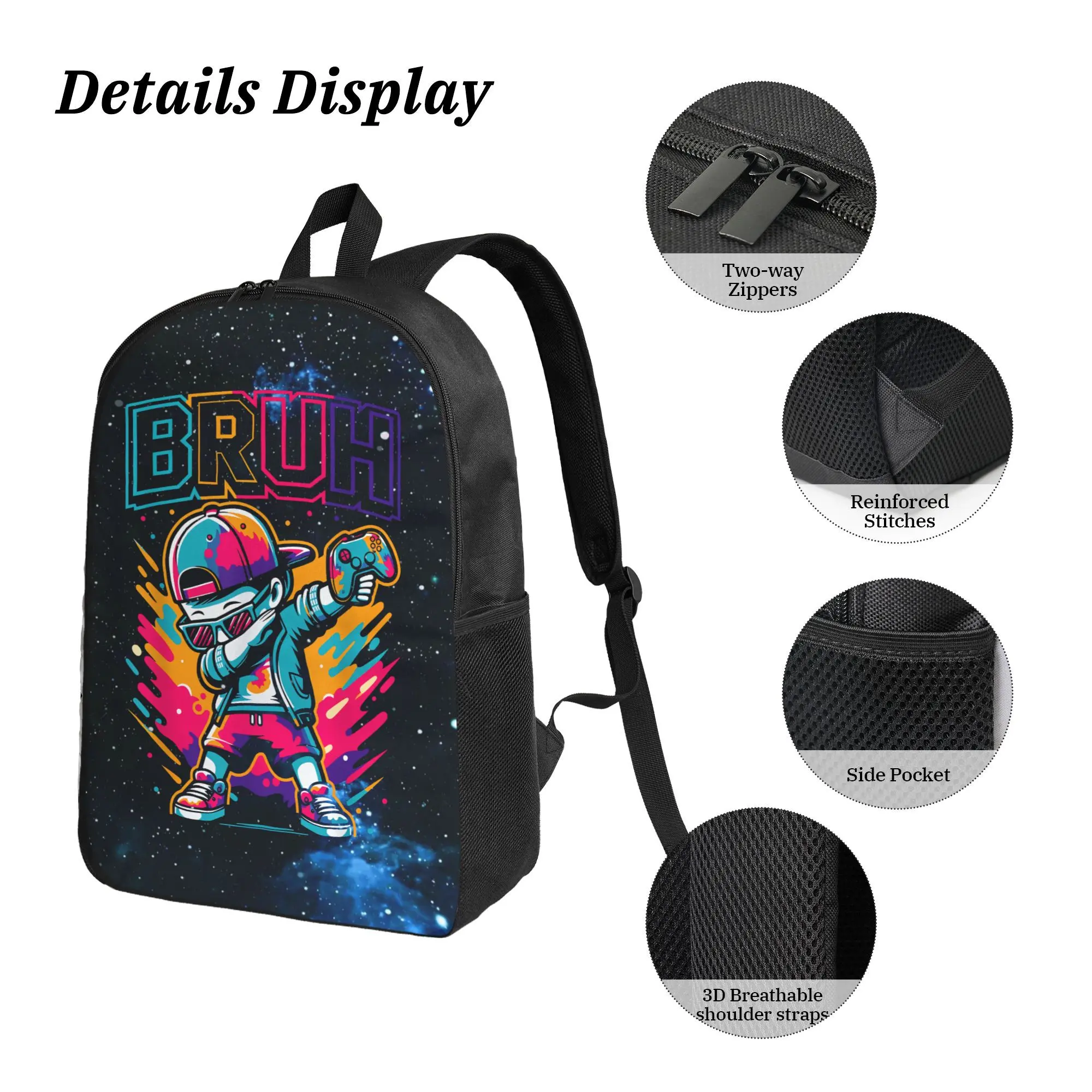 67 Emoji-Inspired Backpack with Game Boy Kid Design - Durable Oxford Fabric, Waterproof, Ergonomic Comfort, Anti-Theft Pocket, Ideal for School, Work, Travel