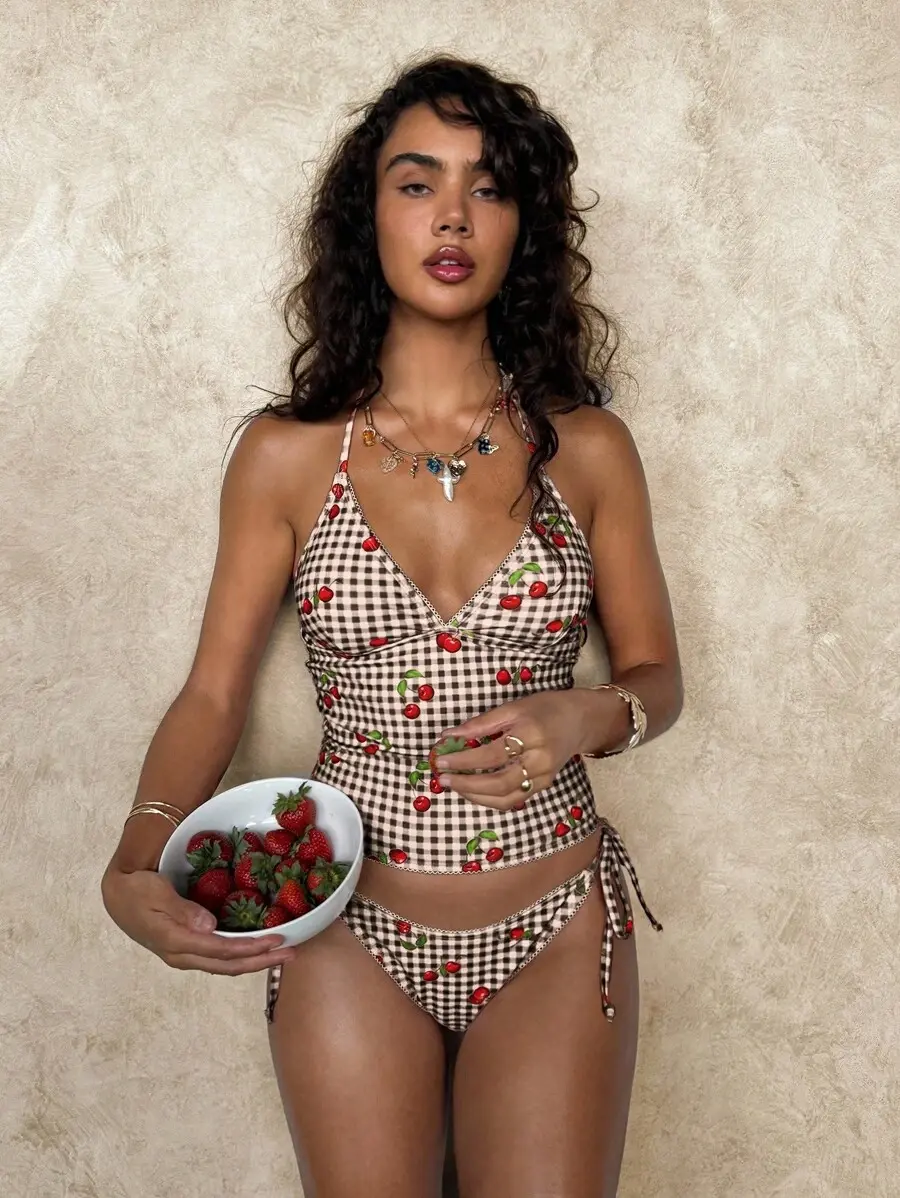 KULANI Swim Summer Sweet Cherry Plaid Bikini Set