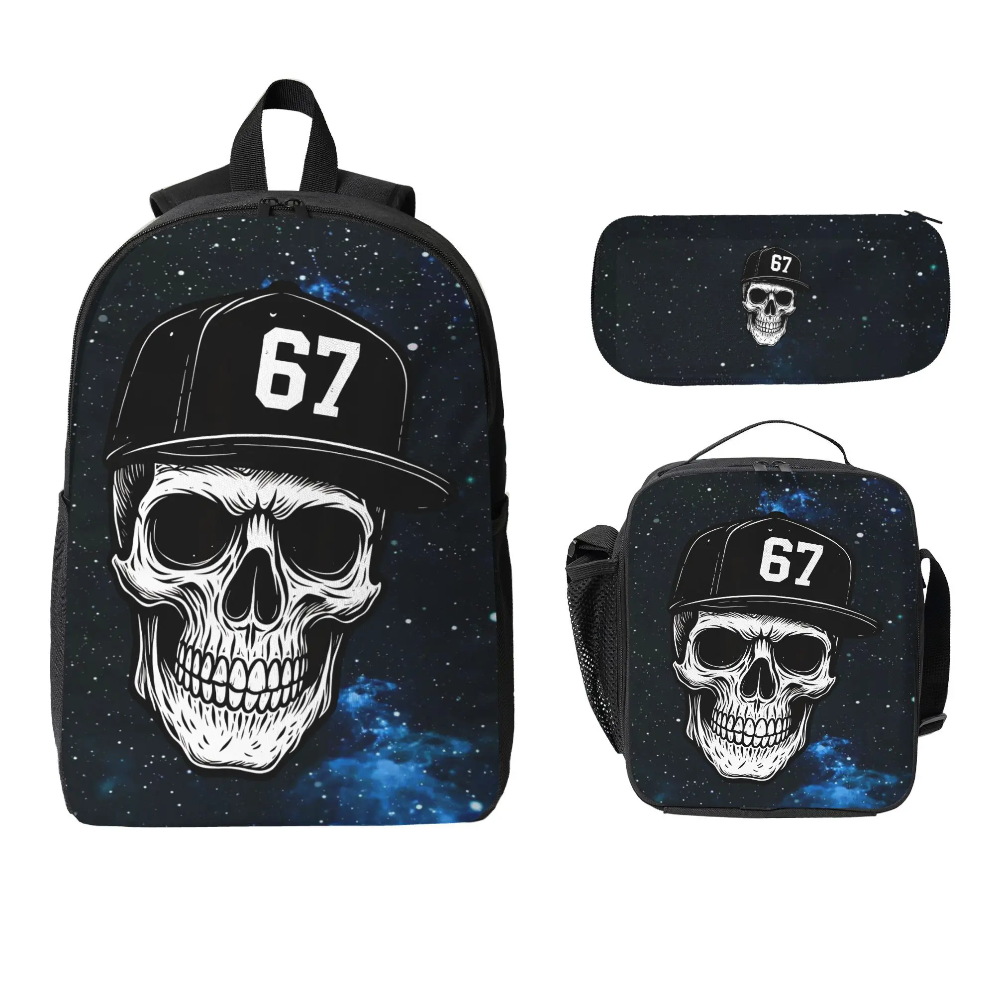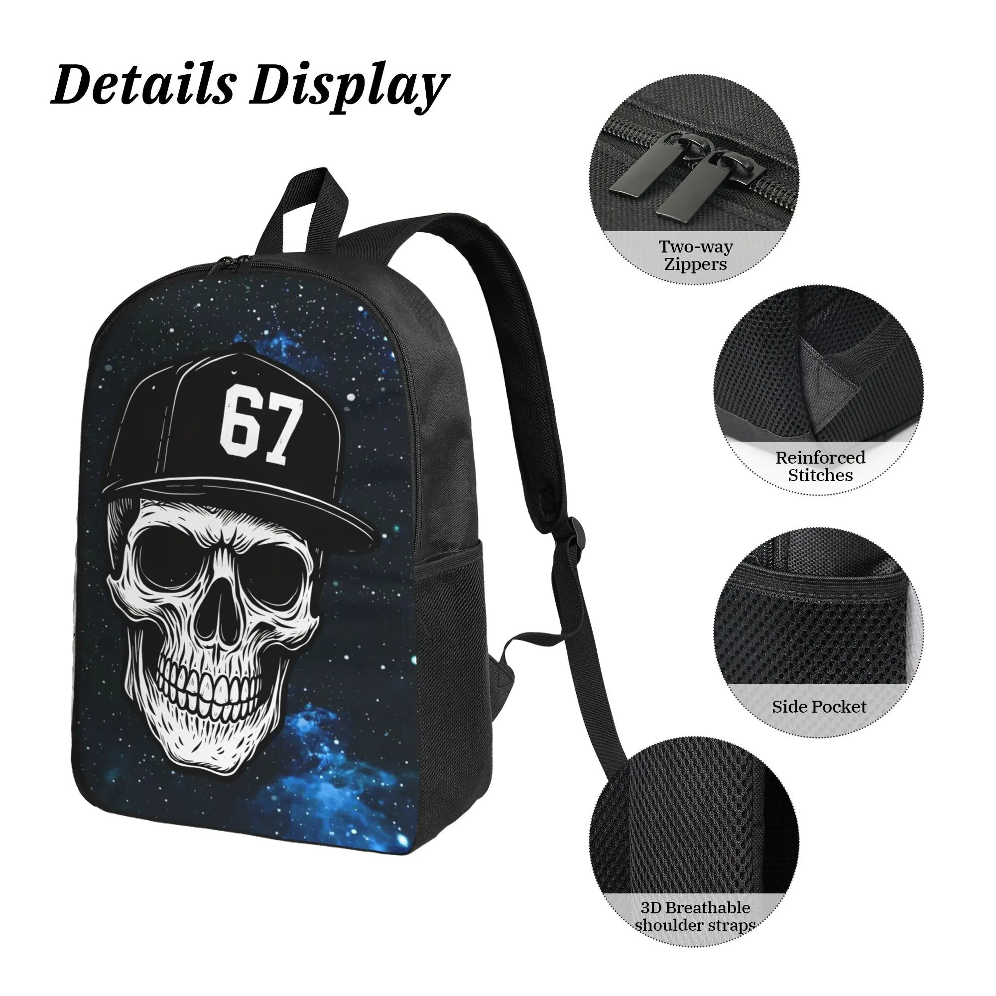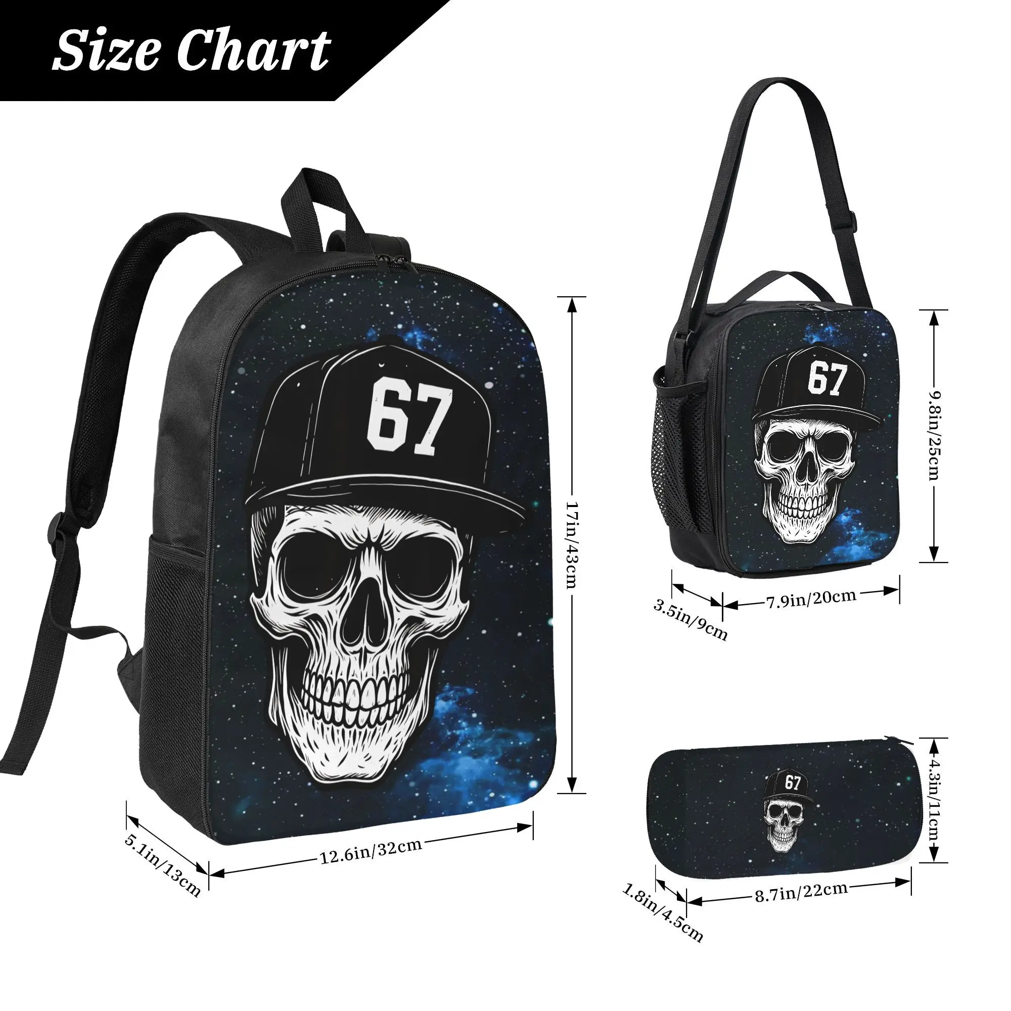 67-Inspired Backpack for Students Professionals & Travelers Ideal for School Work or Leisure with Skull Design