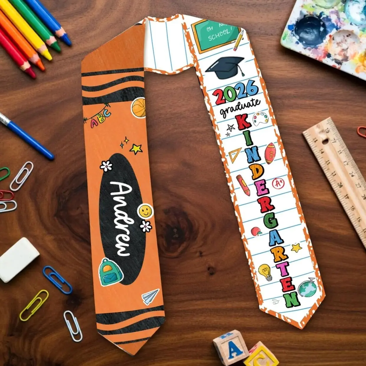 Custom Prek K Grad Pencil Graduation Stole with Name: Class Of 2026 Stole for Boy Girl, PreK K Graduate Sash, Toddler Grad Gifts