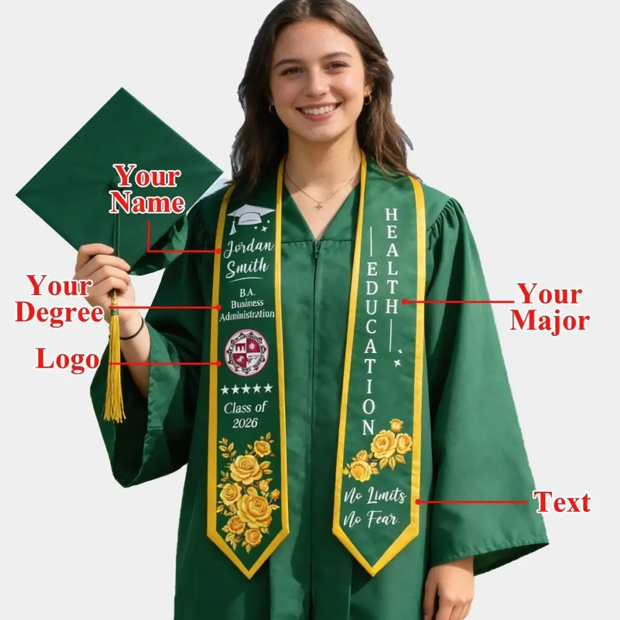 5. 5 Styles Custom Graduation Stole, Personalized Logo Text Graduation Sash, Class of 2026 Honor Accessory
