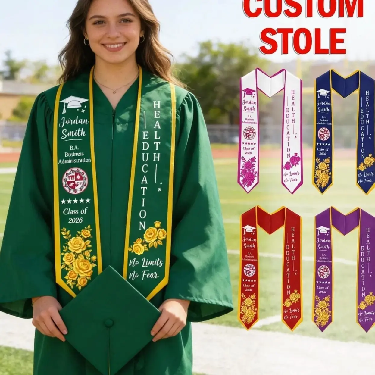 - Custom Graduation Stole makes the perfect gift for the graduating class. Whether purchased for yourself or a loved one, they serve as a meaningful keepsake that commemorates the culmination of years of hard work, dedication, and achievement.