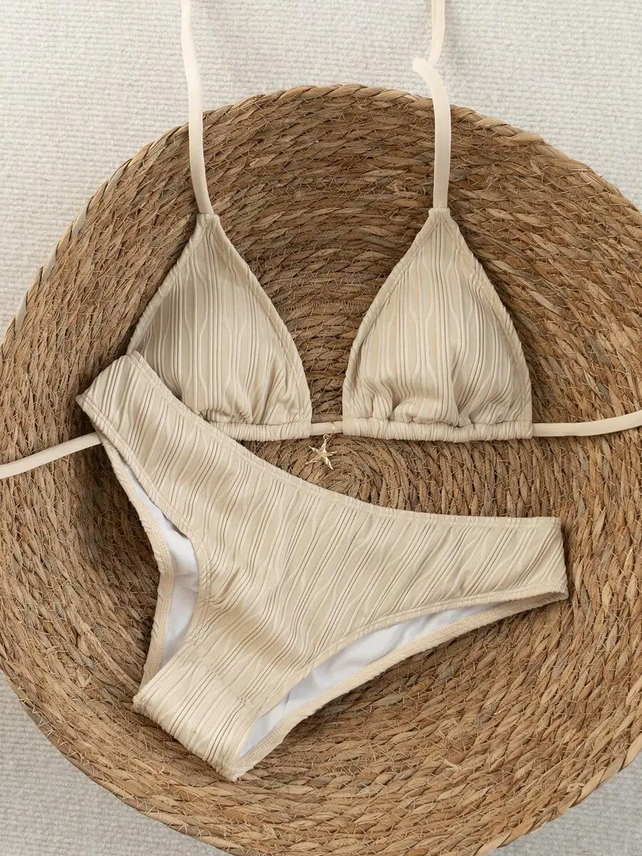 Aleumdr 2 Piece Bikini Set U-Wire Cutout Swimsuit High Waisted Textured 2026 Summer Swimming Clothing Beach Water Sports Tummy Control Swimwear