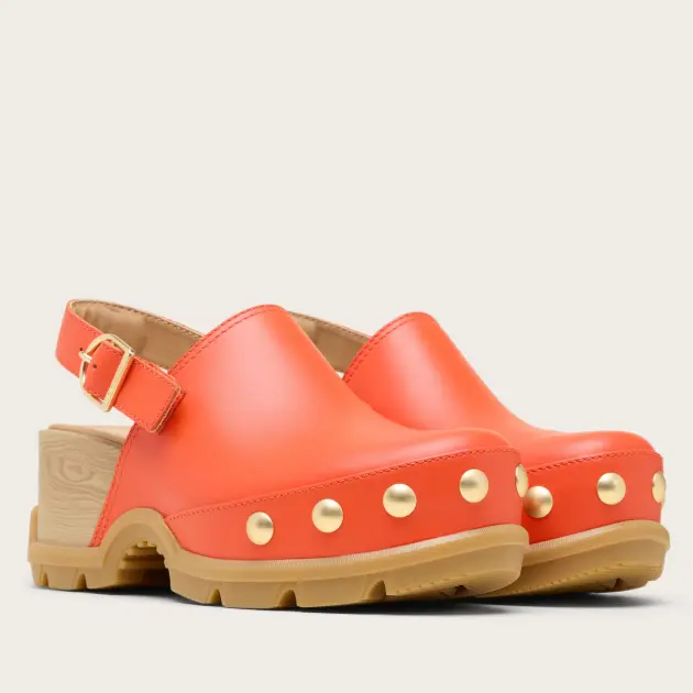 This clog takes a timeless silhouette and retools it with upscale volume, clean lines and bold hardware for a more high-fashion look.