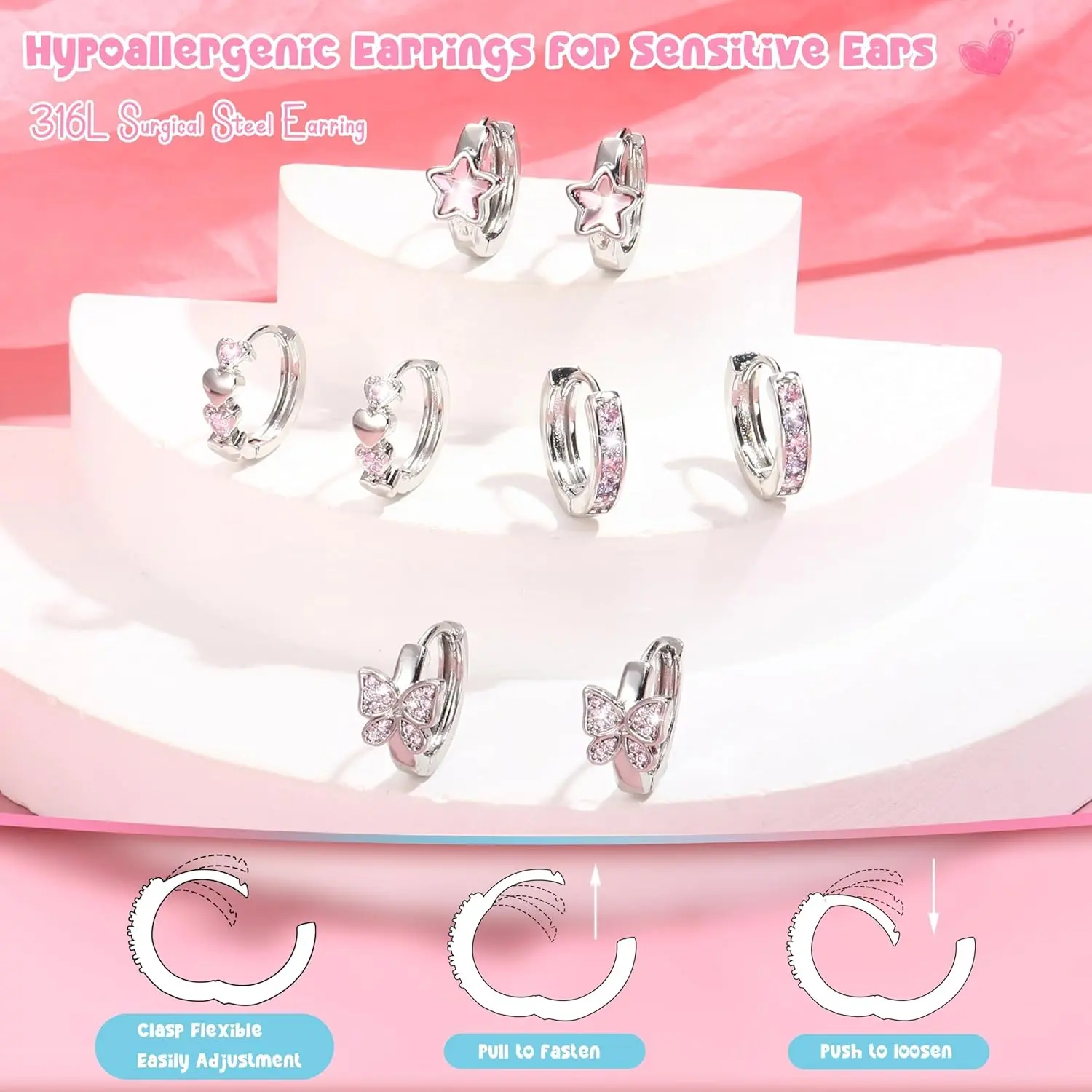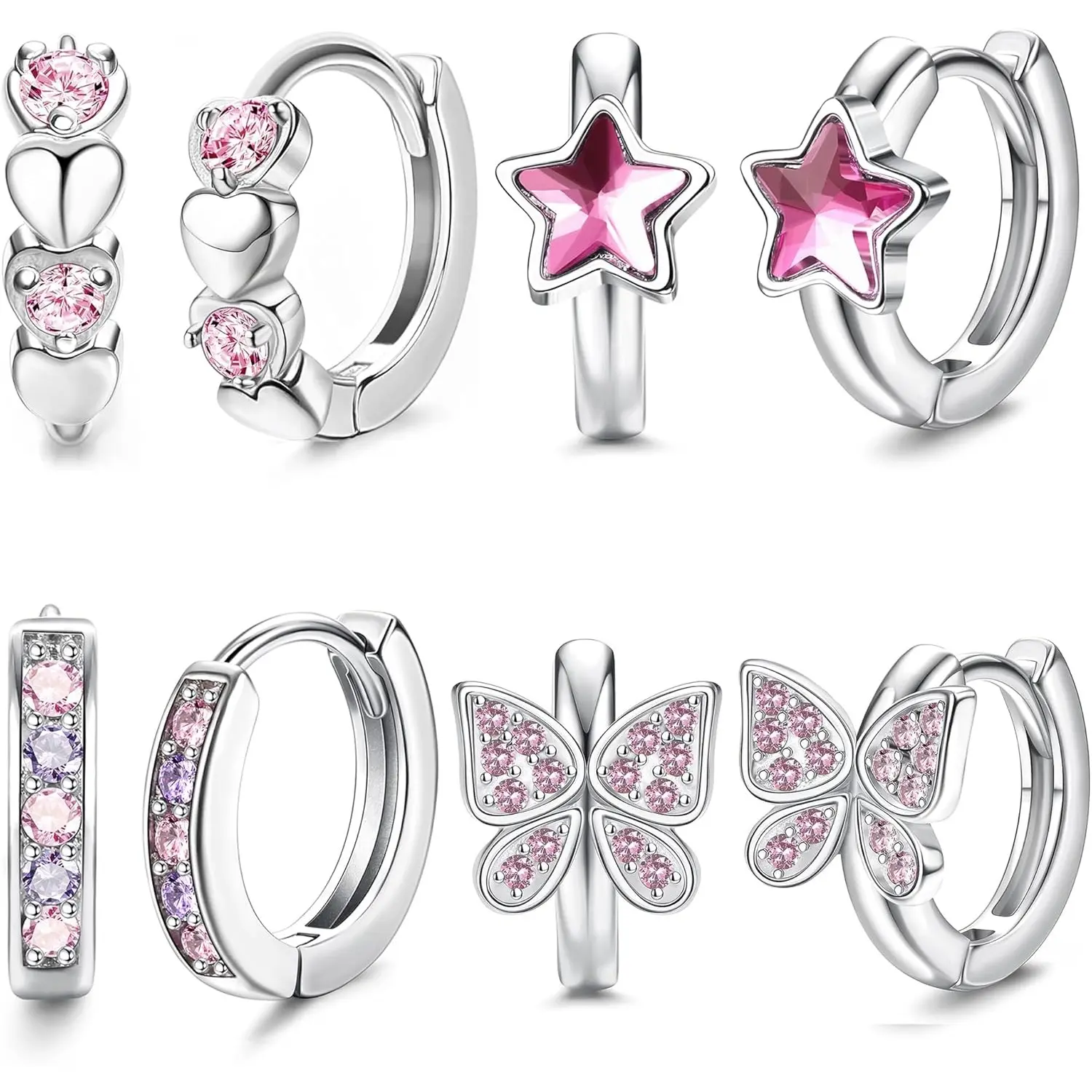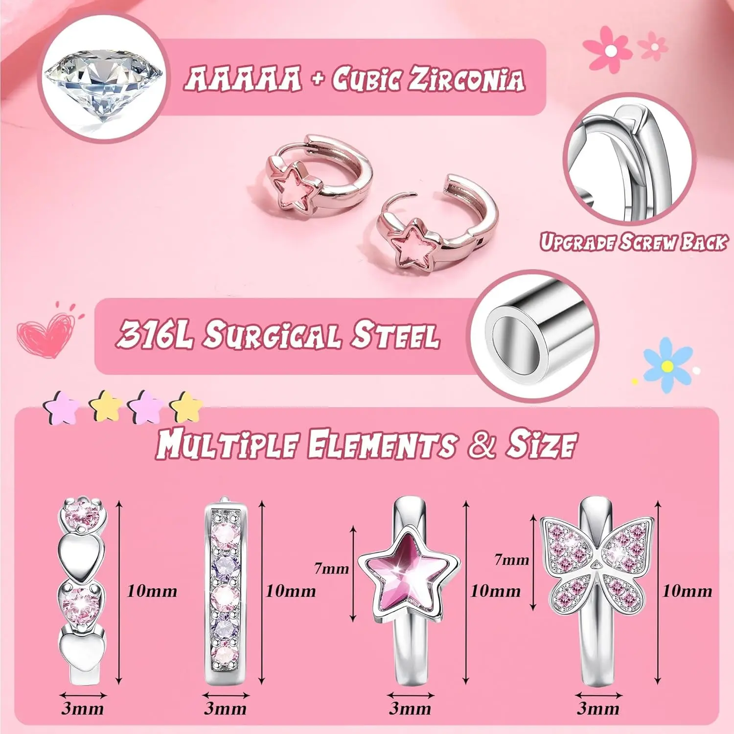 ·Cute Hoop Earrings Set:You will receive 4 pairs hypoallergenic hoop earrings for women,including delicate CZ huggie hoop earrings,tiny star cartilage hoop earrings,double love heart hoop earrings,small butterfly hoop earrings.The cute earrings will put you in a good mood,economical set which deserves your buying.