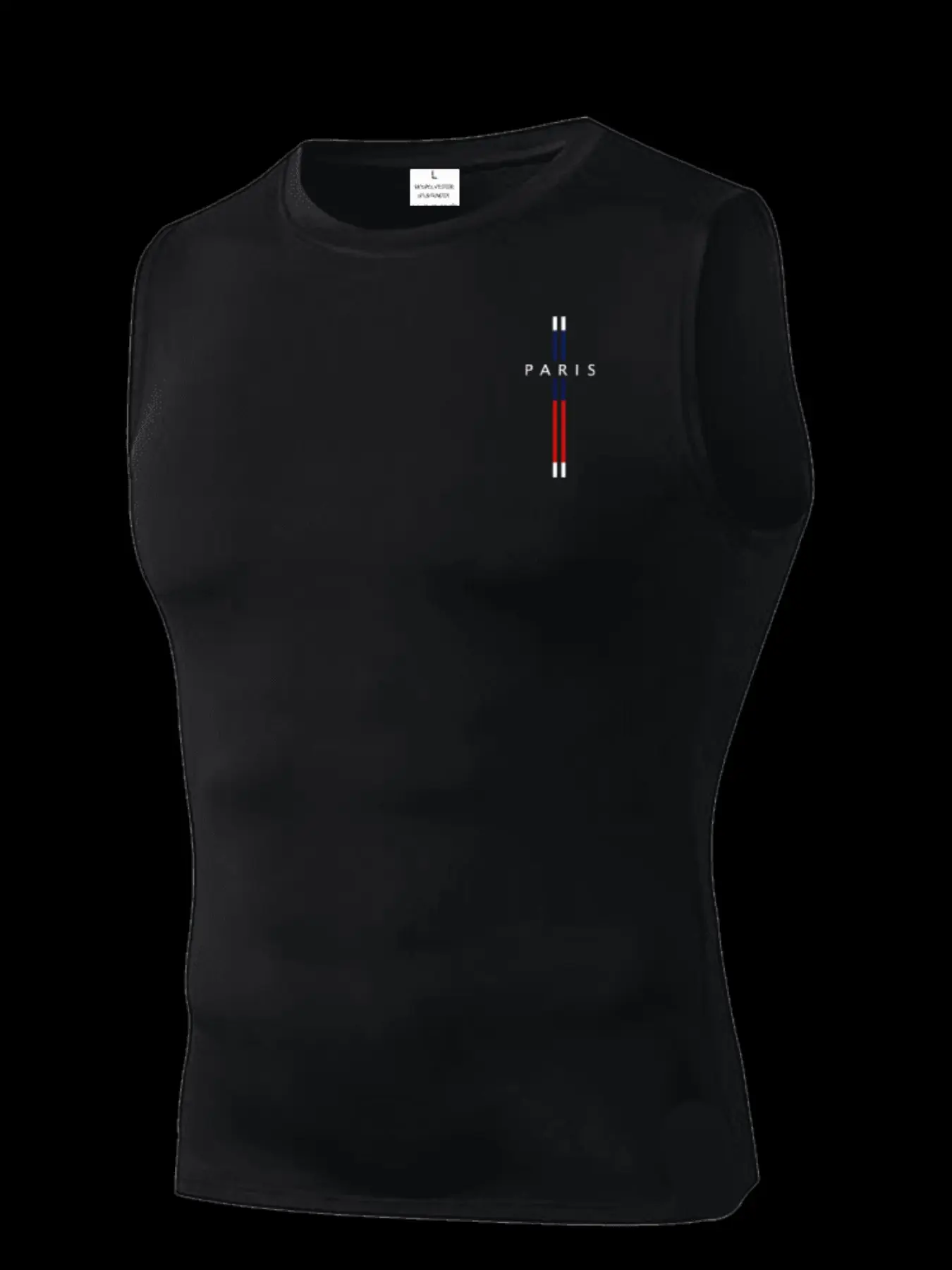Men's Short Sleeve Sporty Tee, Quick-Dry Breathable Fabric, Paris Pattern, Slim Fit, High Elasticity, Ideal for Gym, Running, Boxing