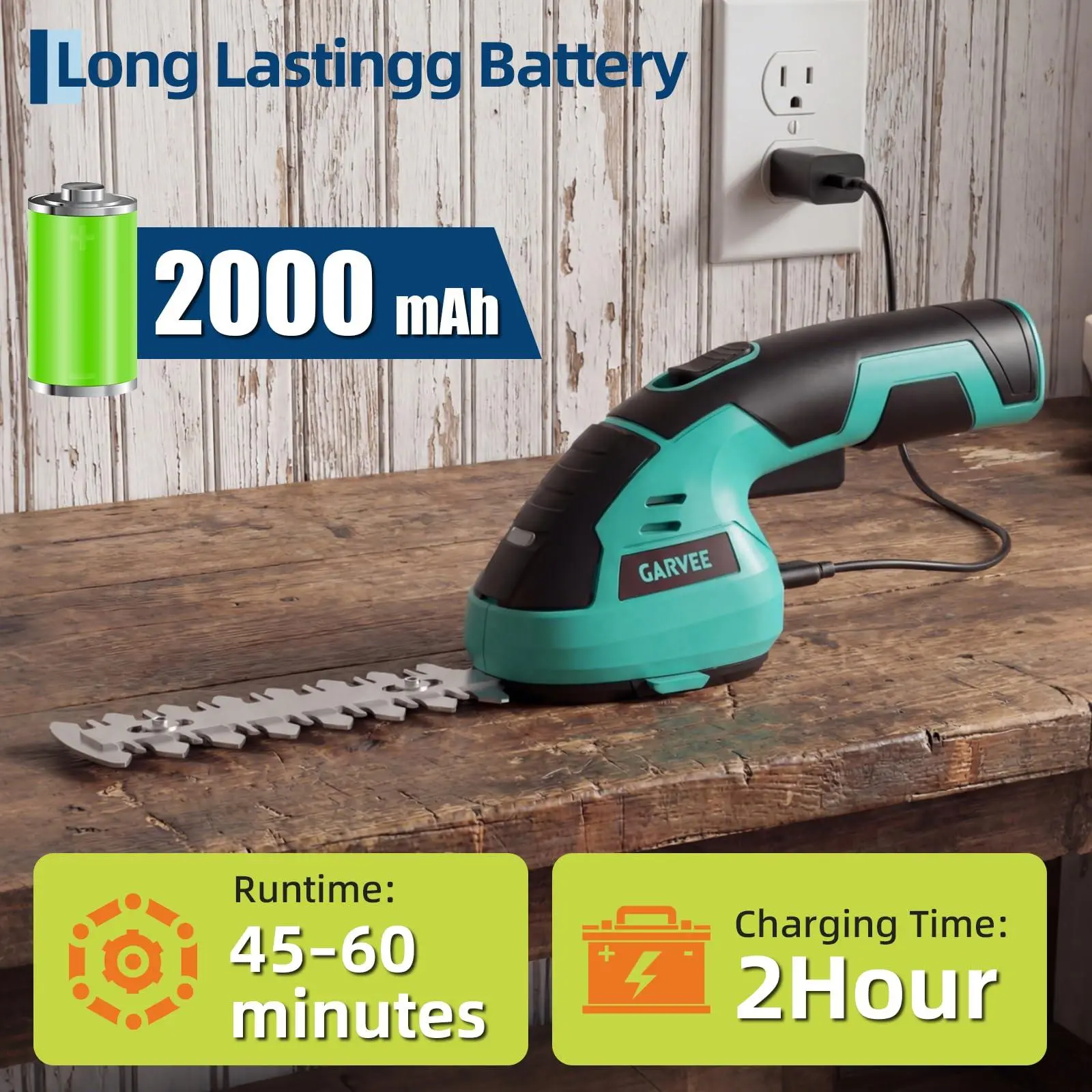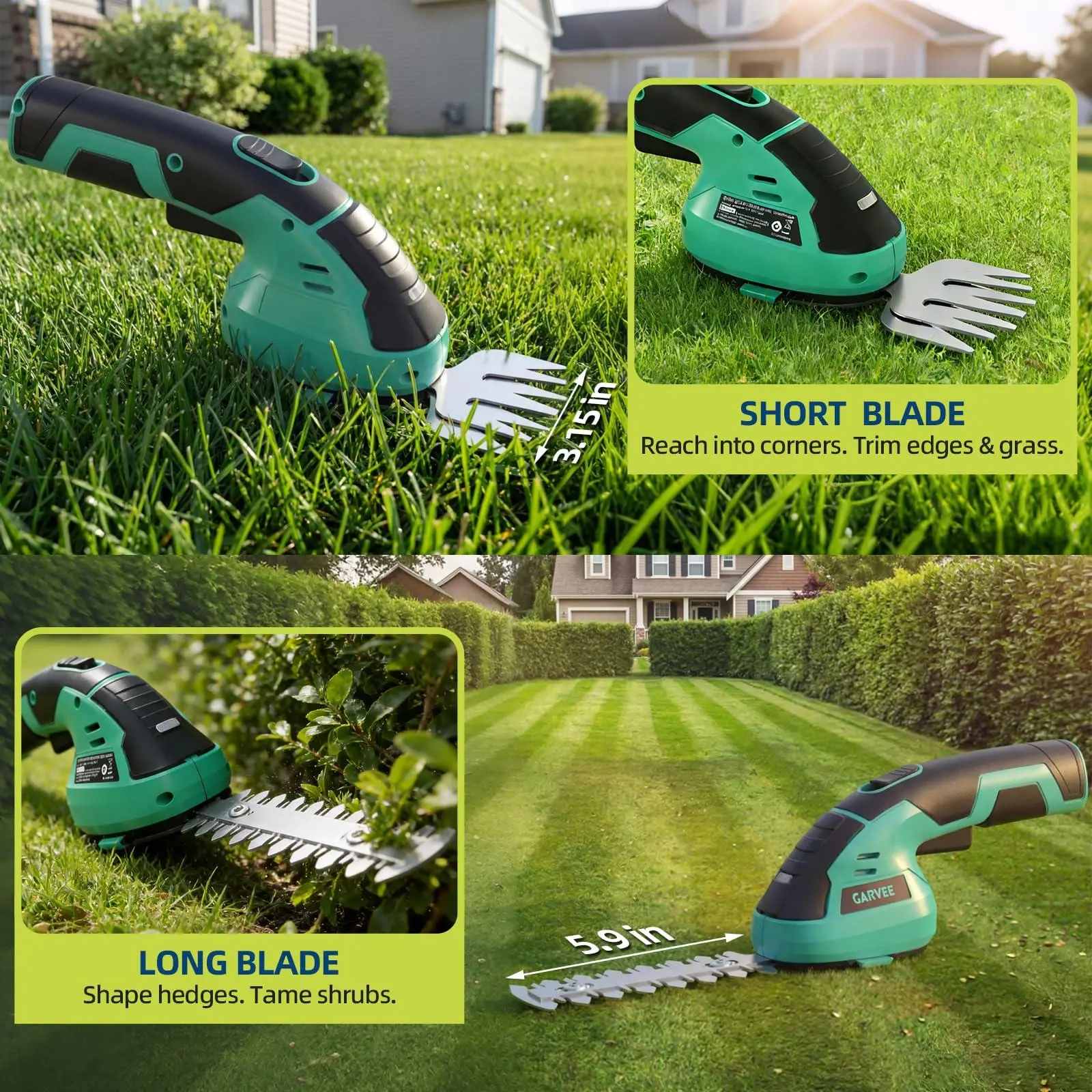 Dual Sharp Blades for Efficient Cutting - Includes a 5.9-inch shrub shear and a 3.15-inch grass shear for neat lawns, hedges, garden edges, and small branches. Blades are tool-free to replace and safely cut branches up to approx. 0.32 inches thick.
