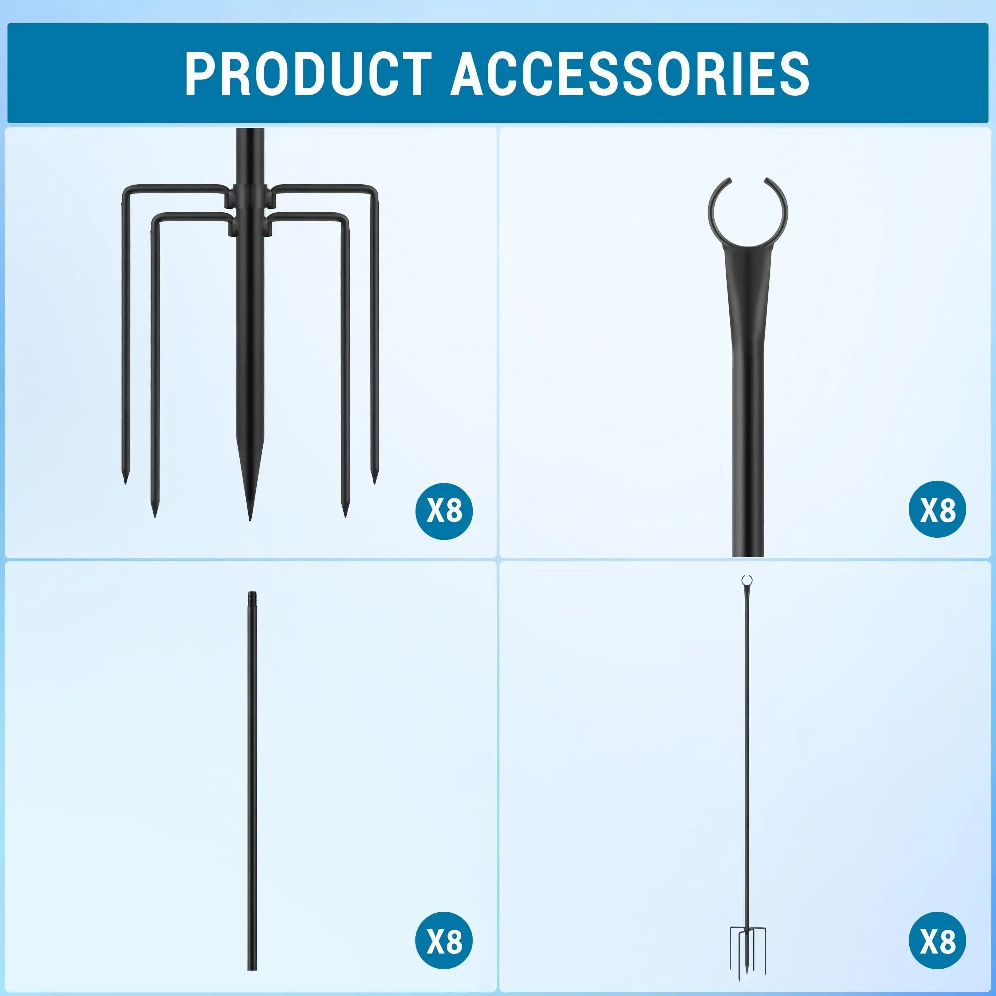 EASY TO ASSEMBLE - Our backyard light poles for string lights are designed with 3 sections, making them very easy to install. Connect the multiple sections of the light poles in the direction of the threads, then install the ground plugs in the correct order, and you are all set to use. When installing, insert the split end of the bottom rod into the soil. You can complete the installation within 5 minutes