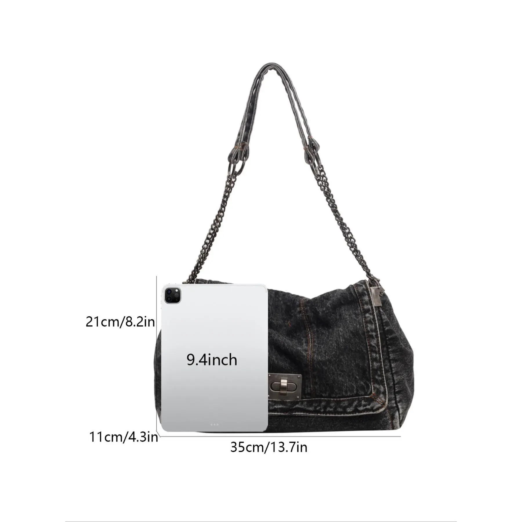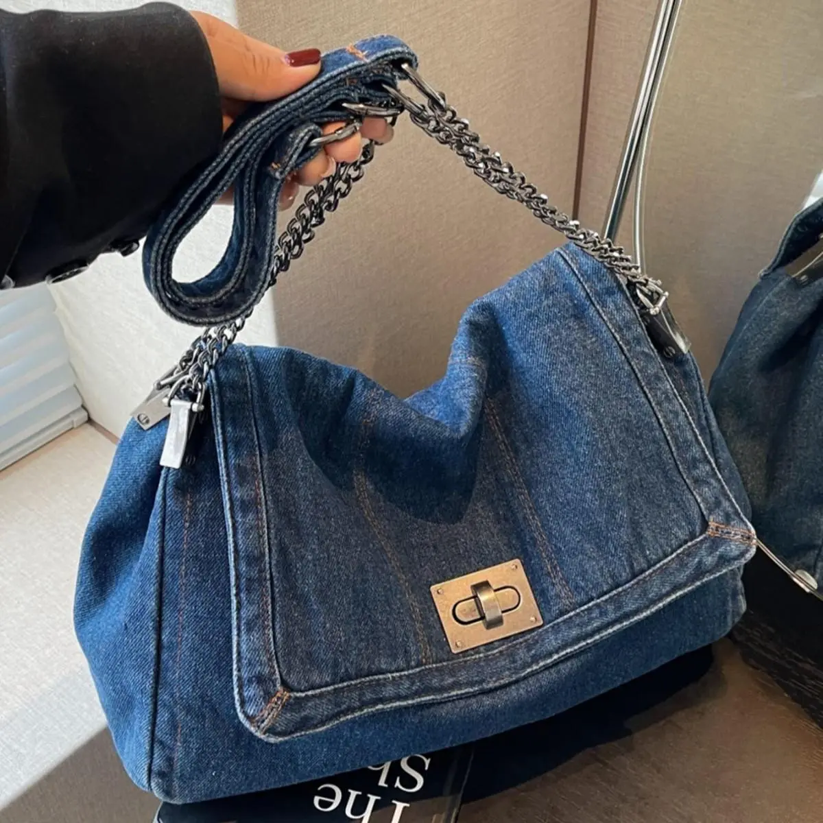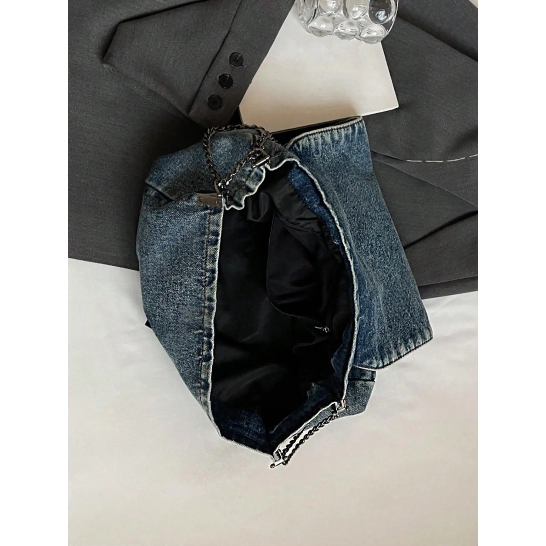 2026 Denim Bag Chain Shoulder Bag Women's Fashion Commuting Work Underarm Bag Vintage Texture Travel Handbag